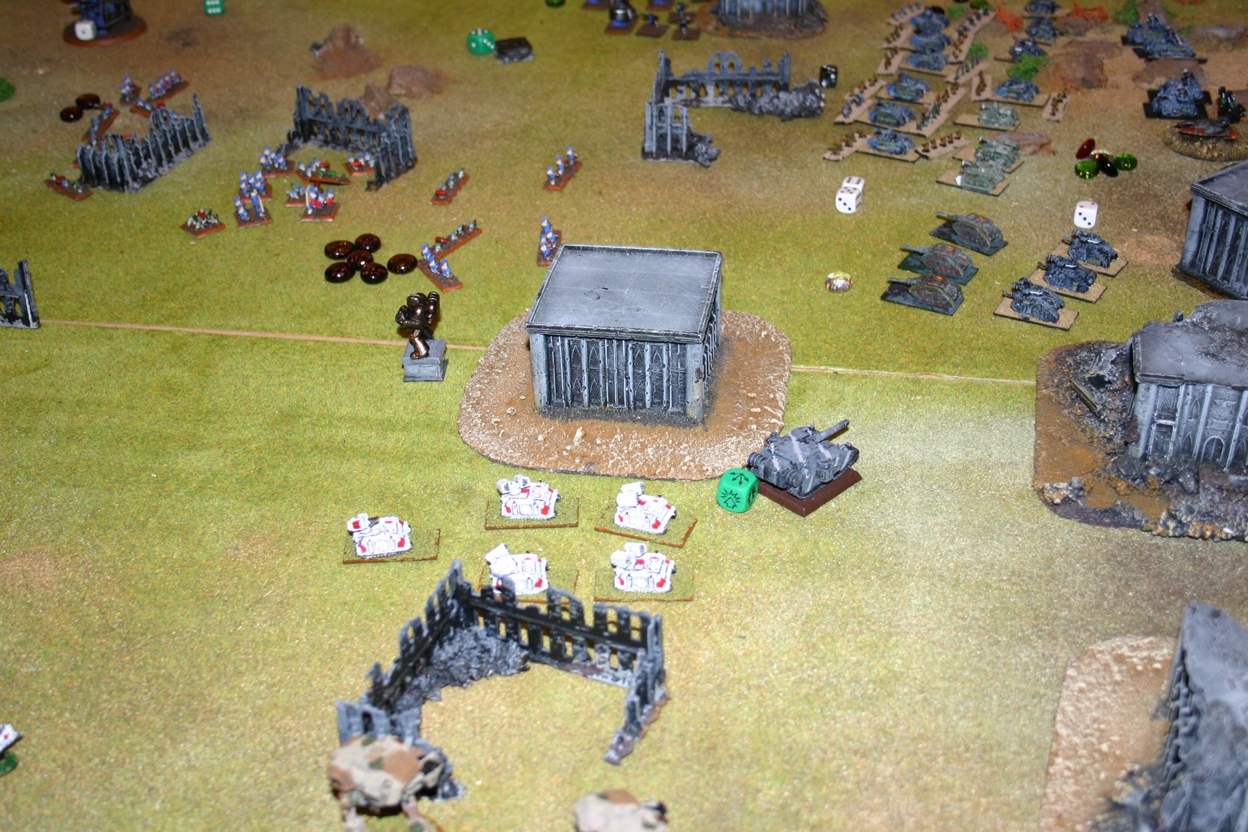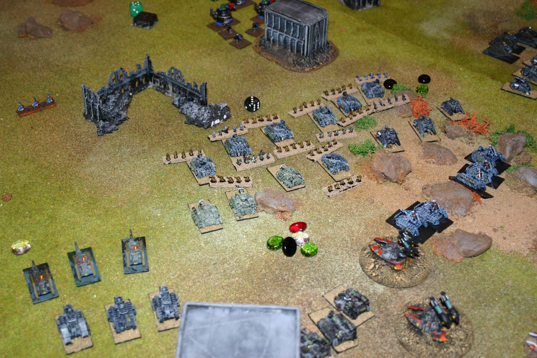 Epic Armageddon Game This is a demonstration/participation game of Epic Armageddon. From GamesDay 2005. Seems to have a real mix of forces including Imperial Guard, Space Marines, Eldar and Orks. The game is also making use of the Forgeworld Epic buildings.