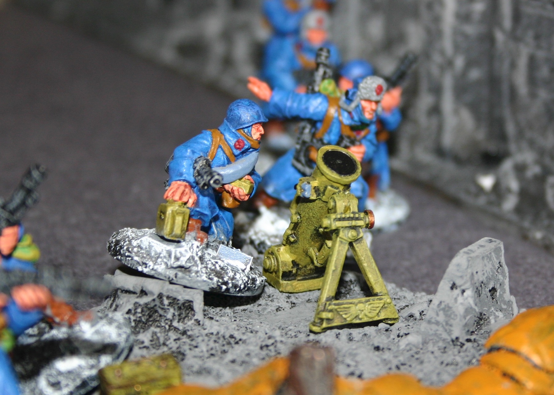 The Stormboyz were using their jump packs to get to the objective, a Grot Bomb Launcha. It contained reconnaissance photographs that the Orks needed to retrieve and the Imperial Guard needed to stop them.