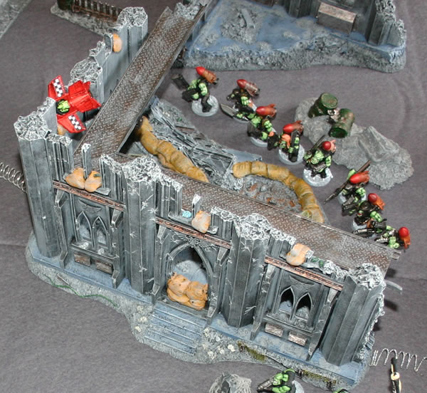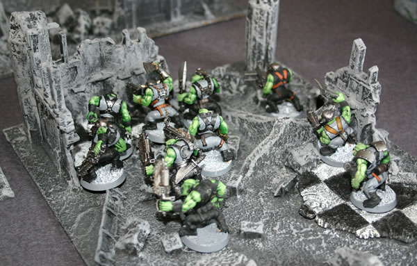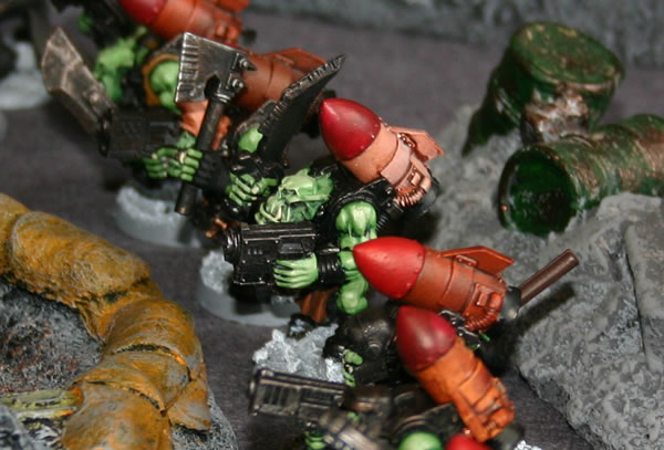 The main mob of Ork Boyz were running up the main street as a diversion so that the Stormboyz could get the photographs.