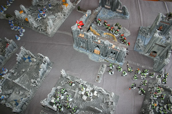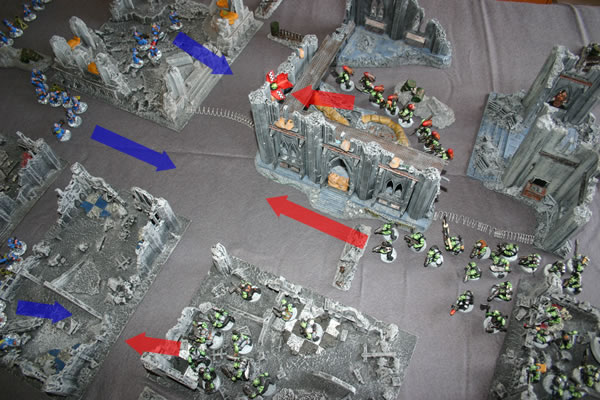 This shows the state of play and the main moves been made by the Orks and the Imperial Guard.