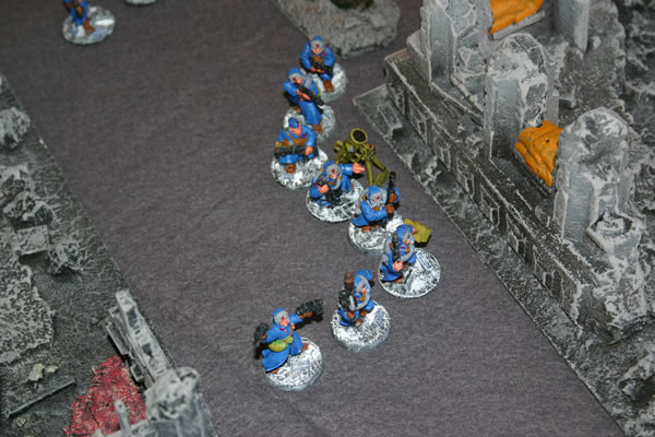 Here is an overhead photograph of a recent game of Warhammer 40000 using bits and pieces of rules from both Cityfight and the new Cities of Death.