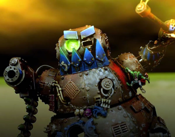 There can be absolutely no doubt whatsoever that this is a Venerable Black Templars Dreadnought. In fact it could hardly be more venerable! Will Hayes’s original Mk4 Dreadnought has pretty much disappeared under all the extra work that Simon Egan has put in to create this bio-mechanical masterpiece. Just the banner pole is a gorgeous model in itself, but when you take a little bit of time to take a really good look at the model, you have to admit this is a damned nice model, regardless of what you collect. This lovely model of a Black Templars Venerable Dreadnought is available to pre-order online at the Forge World online store now and is due for release from Tuesday May 30th.