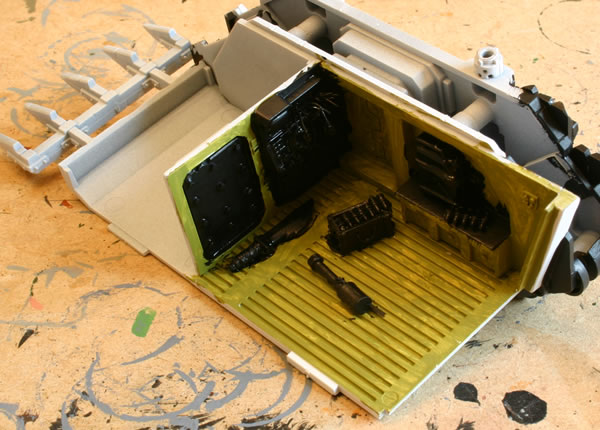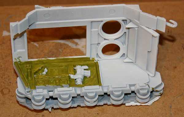 Having undercoated the model, I gave the interior a coat of Camo Green to give it an armoured vehicle green look.