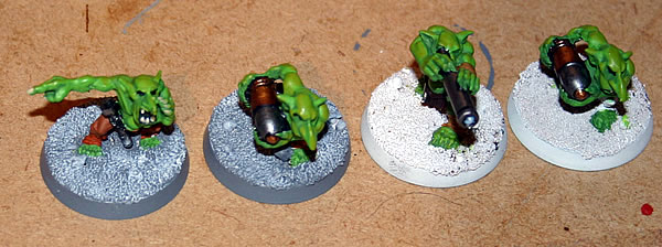 Orks with Heavy Weapons Conversions using plastic components to make Orks with big shootaz and rokkit launchaz.