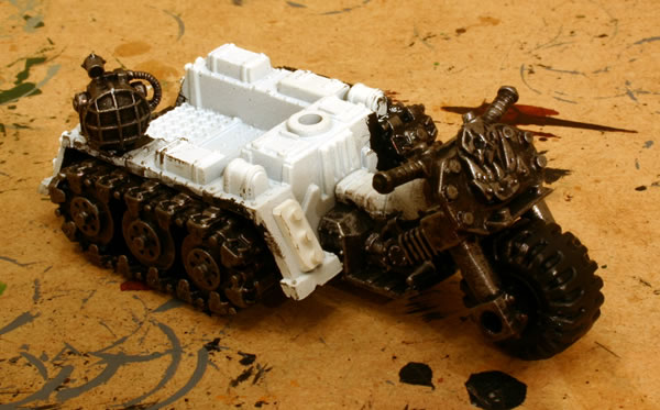 I have drybrushed the metal parts on the Ork Wartrakk.