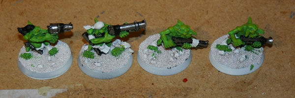Again, a few weeks ago we released an upgrade pack of Cadian infantry equipped with Respirators. Imperial Guard units use Respirators when operating in environments containing gases or particulates that could be harmful or impair the fighting ability of the troops. A few likely examples are smoke filled buildings, noxious swamps or spore filled Tyranid Hives. This is a pack of twelve individual Elysian Respirator heads, eleven ‘normal’ and one special one for your vox-caster.