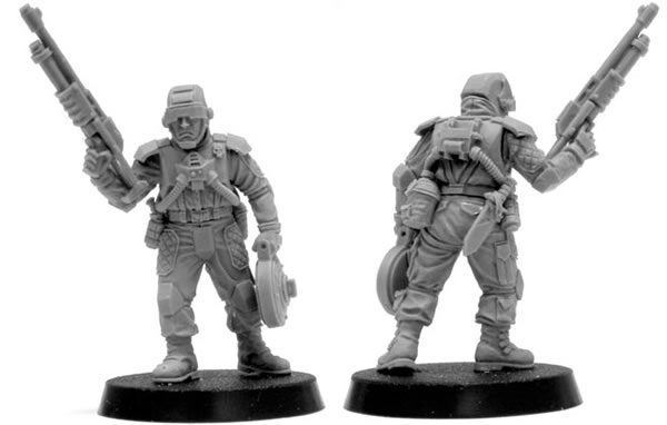 A few weeks ago we released a Cadian veteran upgrade pack with some really neat new shotguns. This new pack of Elysian Hardened Veterans also have combat shotguns that I think are equally cool! This complete multi-part resin five-man unit comes with four large calibre pump-action shotguns that feature a sliding collapsible stock: Perfect for close quarter battles when bulky weapons can quickly become a liability. Backing the rest of the unit up with some heavier firepower is the fifth member of the team who is equipped with a bipod mounted Meltagun. And of course this new unit is available with or without Grav Chutes; the choice is up to you.