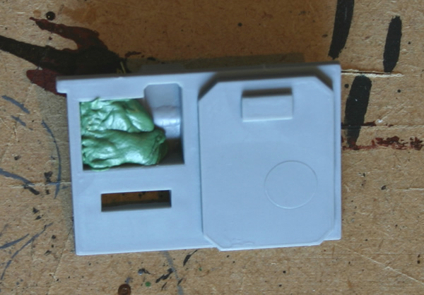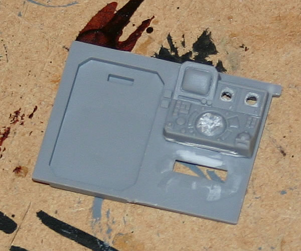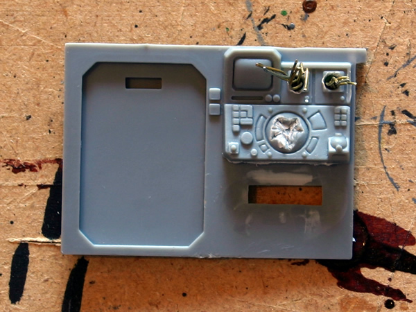 I then added rivets from sliced plastic rod and hinges from the same rod.