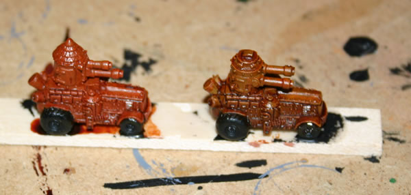 They will next be drybrushed to tone down the wash and then some further detailing added.