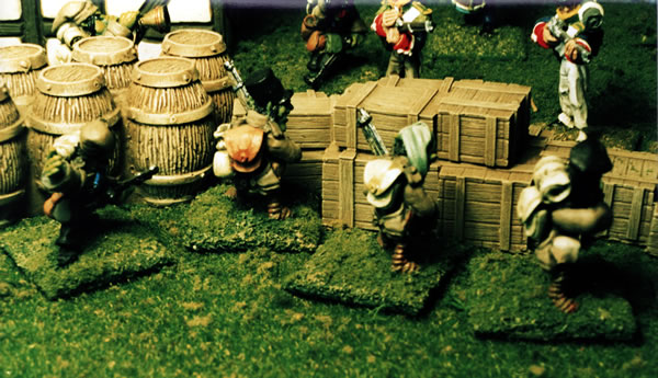 Orc models are from Alternative Armies. The buildings are resin castings from Steve Barber models.