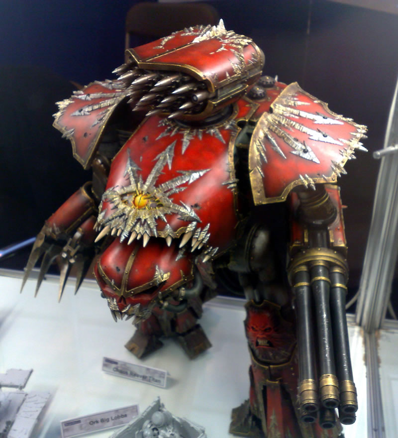 The Mega-Dread Killkannon is a large bore cannon which is fed shells revolver-style from a rotary magazine, and allows the Mega-Dread to tote an artillery piece as easily as an Ork Boy would his shoota, blasting the Mega-Dread’s path through the enemy.