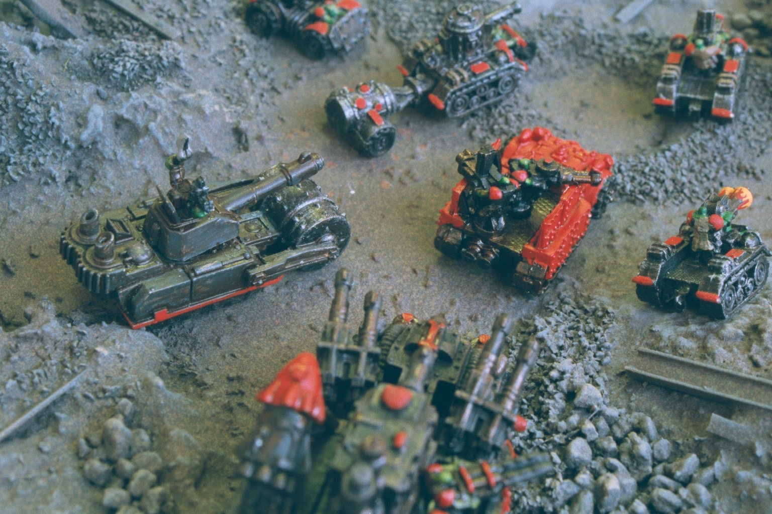 If I remember correctly, from Simon’s perspective I think it was because he had all the Ork vehicles from the Epic 40000 boxed set that he decided to use the Ork turrets.