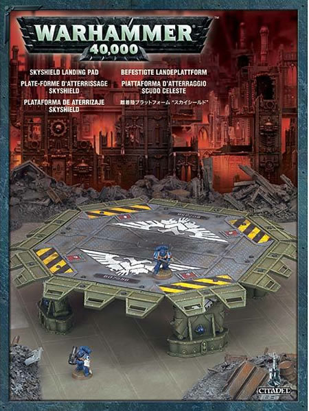 Landing pads are launch bases used by flight-capable craft to unload or evacuate troops and vital personnel. The Skyshield landing pad used by the Imperial Navy, though originally purpose-built to accommodate Valkyrie and Vendetta gunships, is robust enough to serve even the Thunderhawks of the Adeptus Astartes, and has field generators that protect the craft and its crew from incoming fire.