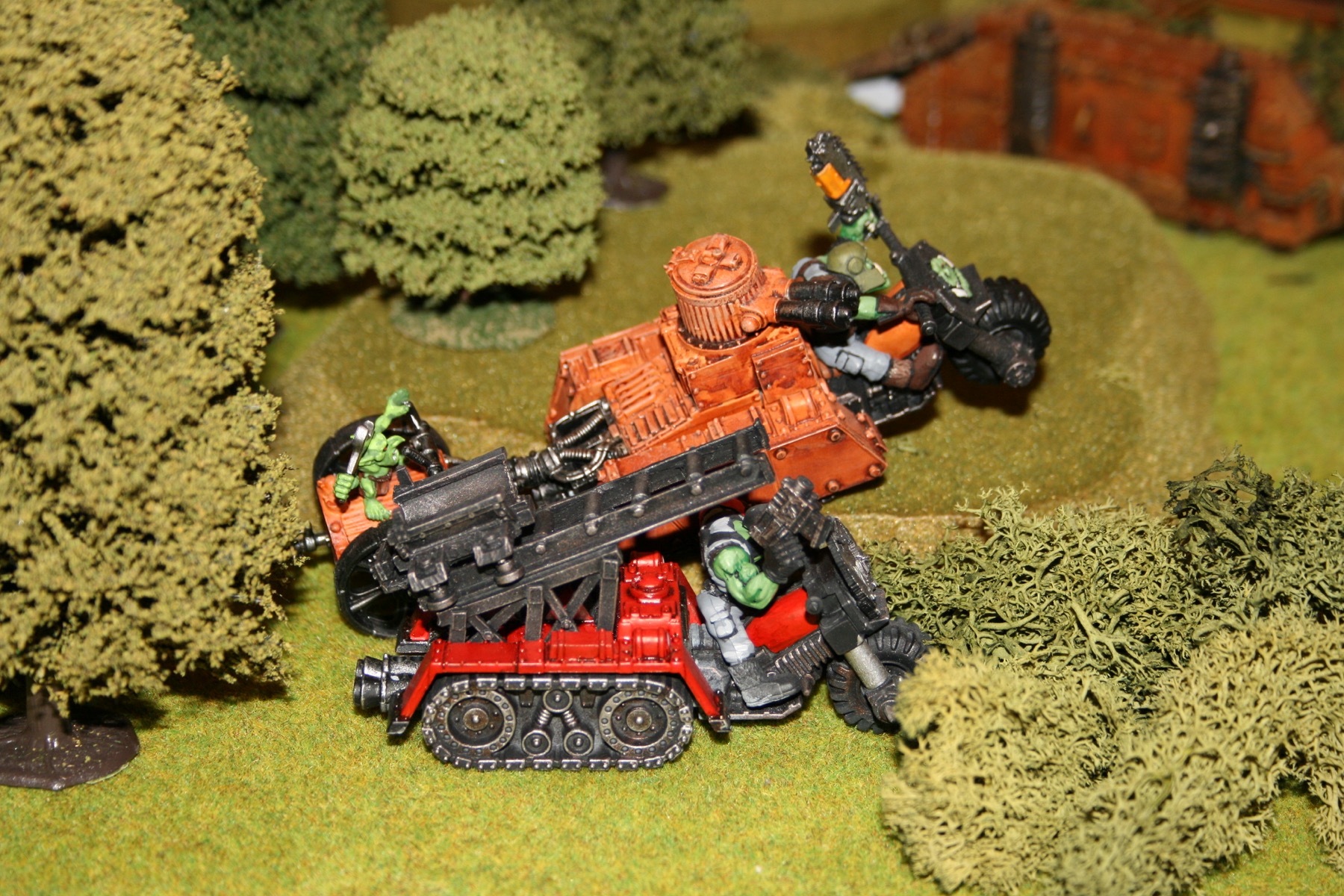 Another photograph of my Forge World Ork Gunwagon in battle against Imperial forces.
