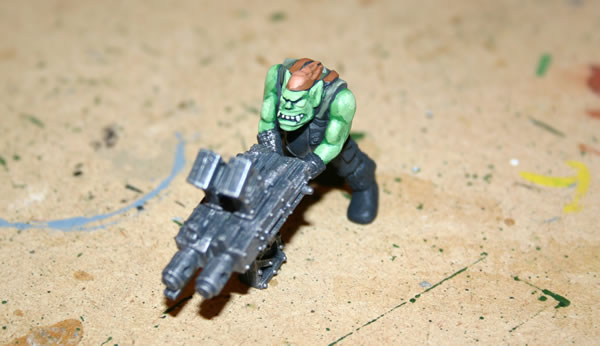 This shot shows a work in progress of one of my Ork Boyz.