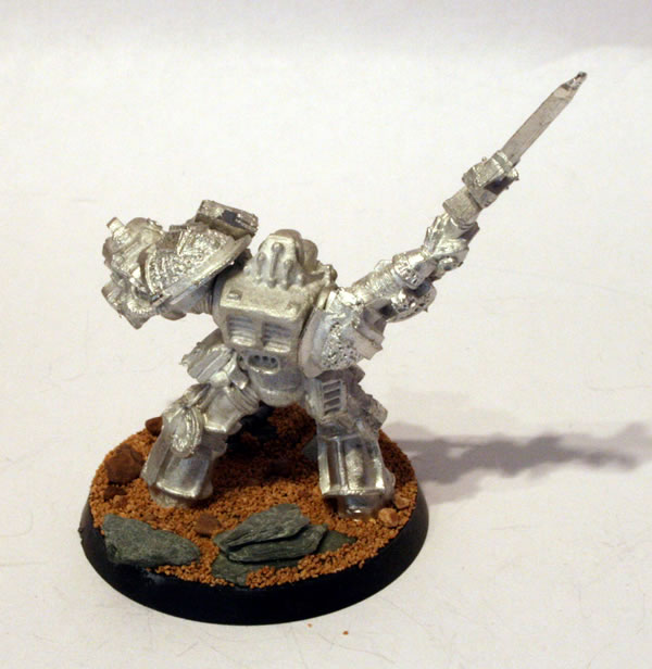The bases had some small pieces of slate stuck to them before being “flocked” with Citadel modelling sand.