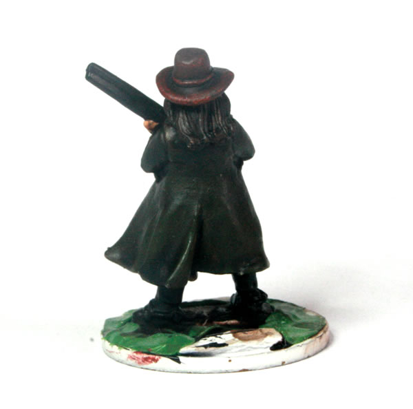 Sheriff McQuaige is part of the OW11/6 Town Toughs & Staunch Defenders pack. As the Sheriff is wearing a suit, as well as carrying a shotgun, he could be used in Victorian Science Fiction scenarios. He certainly could be walking the streets of London as well as the dusty tracks of the old west.
