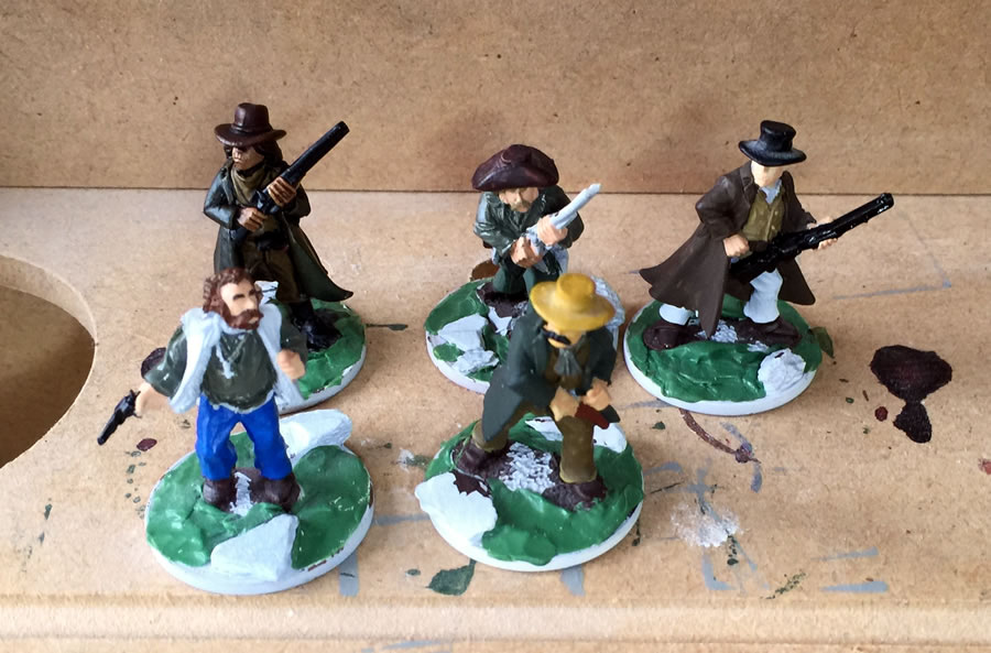 The models were mounted on two pence pieces as bases, they have some Green Stuff added to the bases to add texture. Pieces of slate were added to some of the models.
