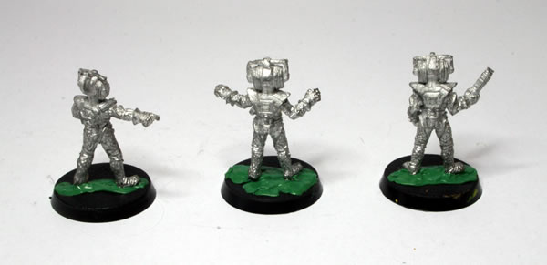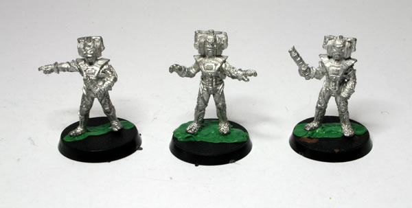 Back in the 1990s Harlequin Miniatures produced a licensed range of 28mm metal miniatures and I have three Cybermen. They are Mondasian Cybermen from the original series rathe than the new versions that arrived on our screens in 2006.