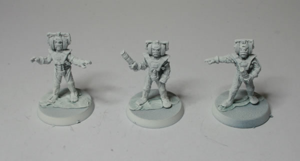 After preparing the bases on the Cybermen I gave the models a white undercoat.