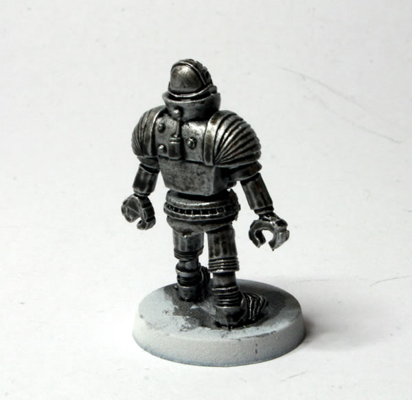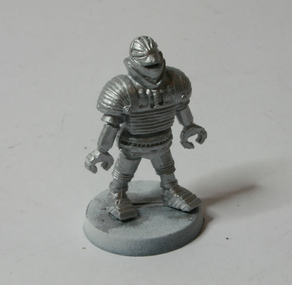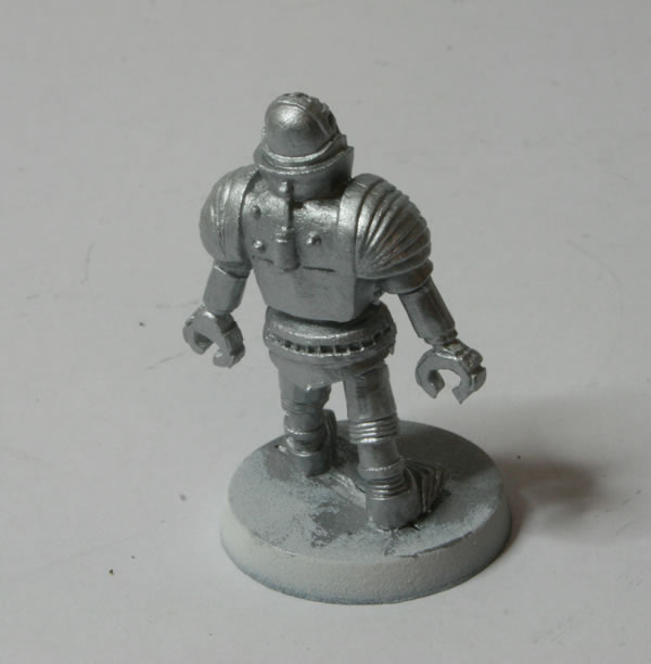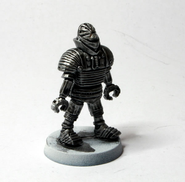 This is the metal miniature that was made by Harlequin Miniatures. After undercoating the model I gave it a basecoat of Citadel Boltgun Metal.