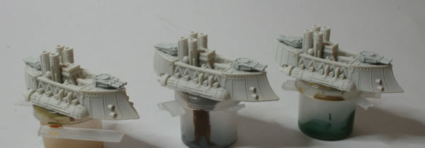 Having given the resin models in the Dystopian Wars Airfield Set a basecoat, the next stages were undertaken.