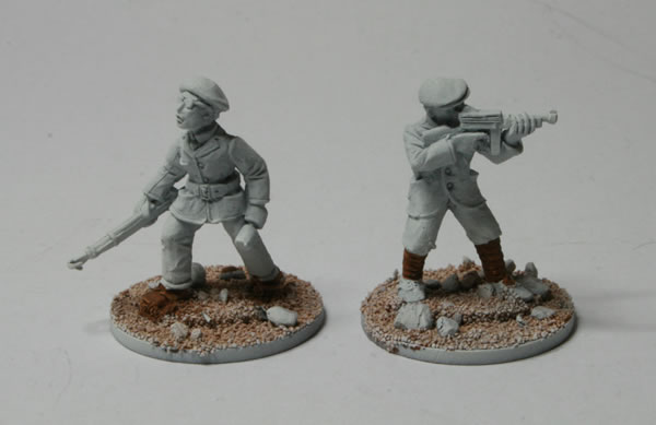 After giving the models a white undercoat, I gave them a basecoat of a light grey.