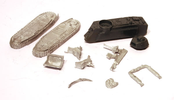 Within the blister you get the resin hull and turret whilst the rest of the model is whitemetal.