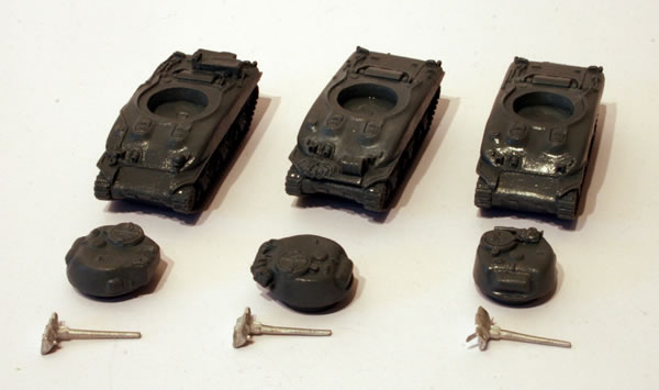 I did like the fact that these are three different castings, and not three copies of a single casting. You can see that from the rear, front and turret stowage.