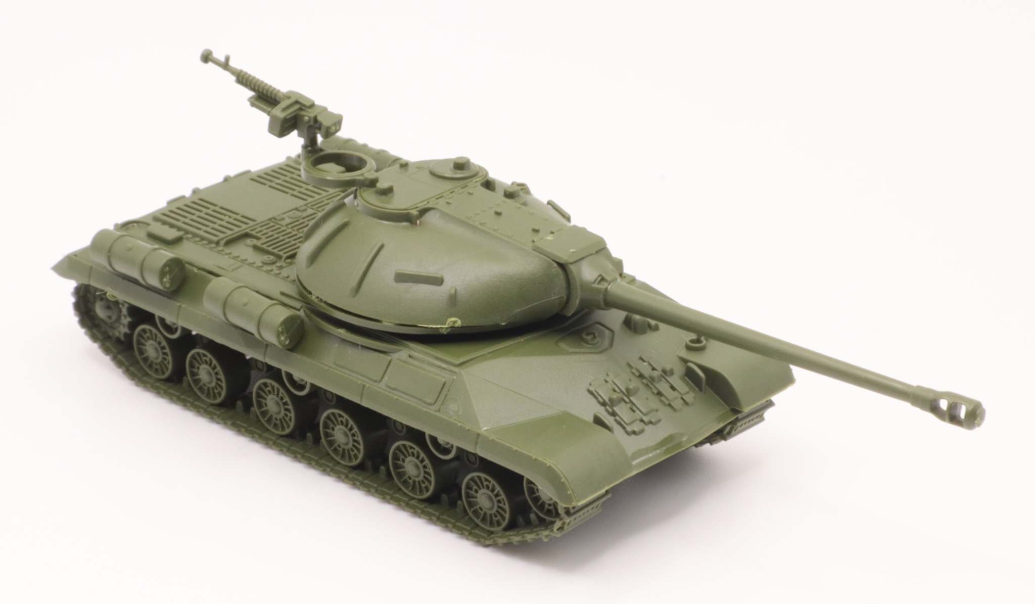 The IS-3 is a Soviet heavy tank developed in late 1944. Its semi-hemispherical cast turret (resembling that of an upturned soup bowl) became the hallmark of post-war Soviet tanks.
