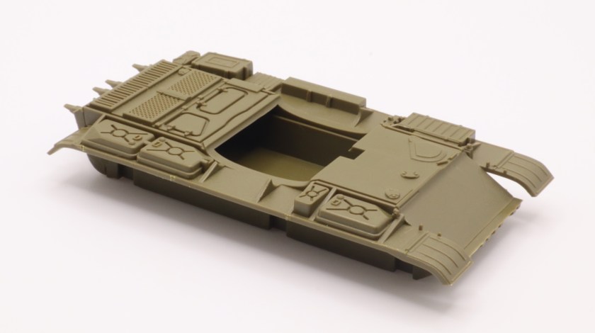 The construction is very simple starting off with the hull of the tank.