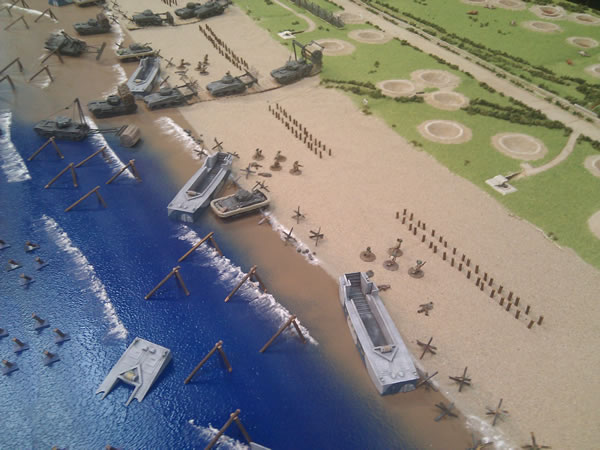 Some very nice Hobart’s Funnies conversions in play, as well as a load of landing craft.