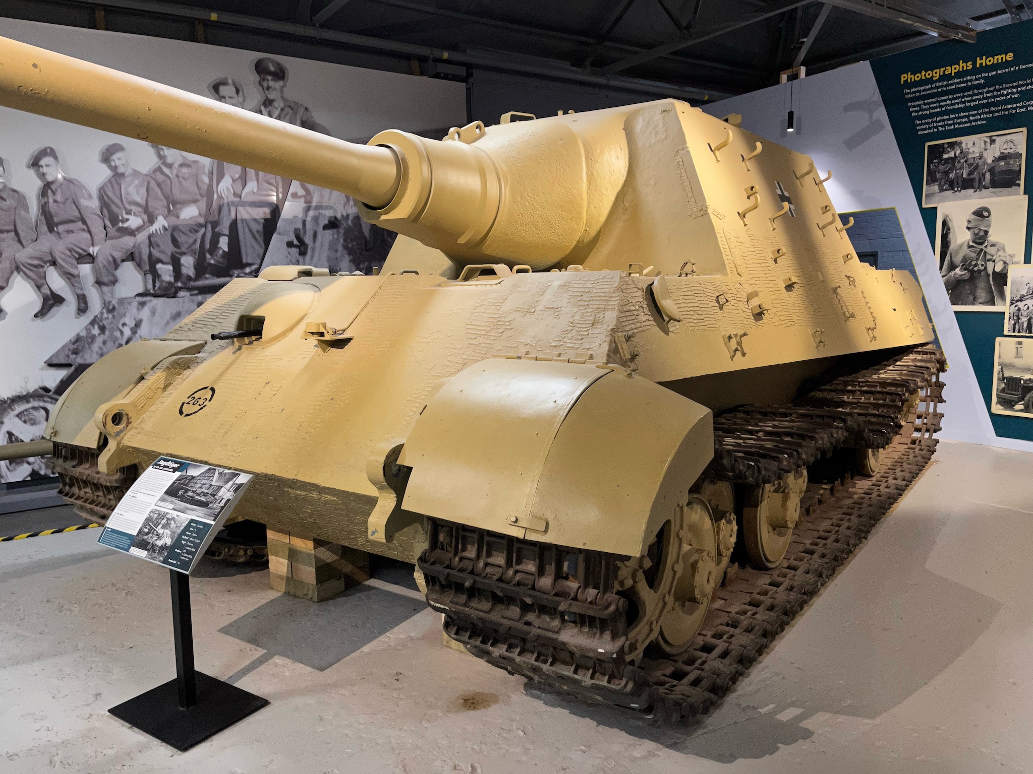 The Tank Museum’s Jagdtiger was abandoned and captured by the Americans in Paderborn in April 1945. Although it had been captured by the Americans, after the war Paderborn became part of the British Zone of Occupation. Both the Jagdtiger and the Pre-production King Tiger now in the Tank Museum were seen at Haustenbeck by British Ministry of Supply Researchers on the 25th August 1945.