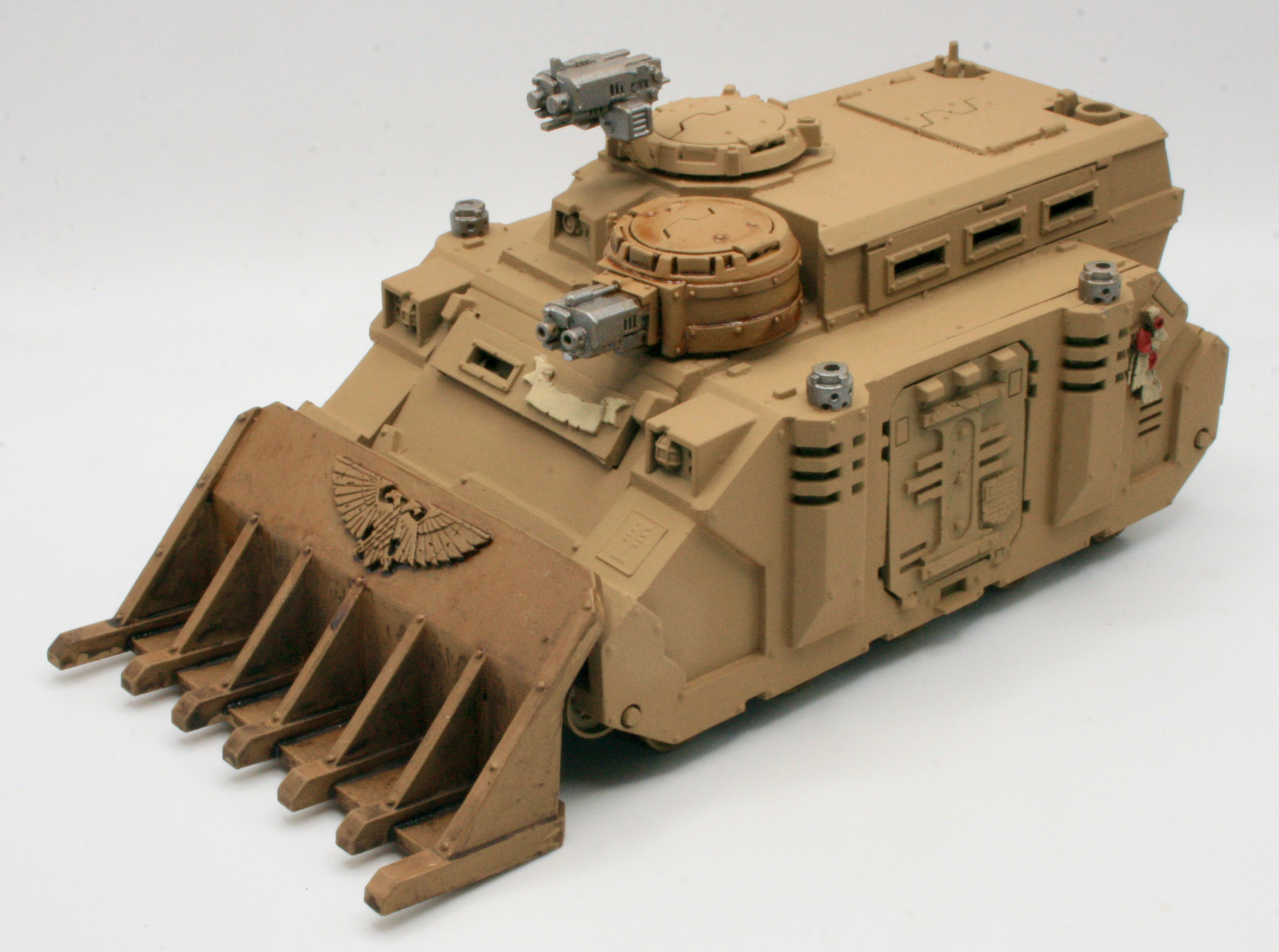 The Repressor tank is often used by Sisters of Battle as transport, and by the Adeptus Arbites in an anti insurgency role.
