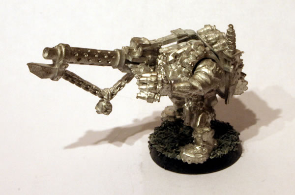 At GamesDay 2006 I purchased a box of Ork Kommandos. I got the Kommando with Big Shoota to add to the force. I put the whole model together. I added some slate to the base.