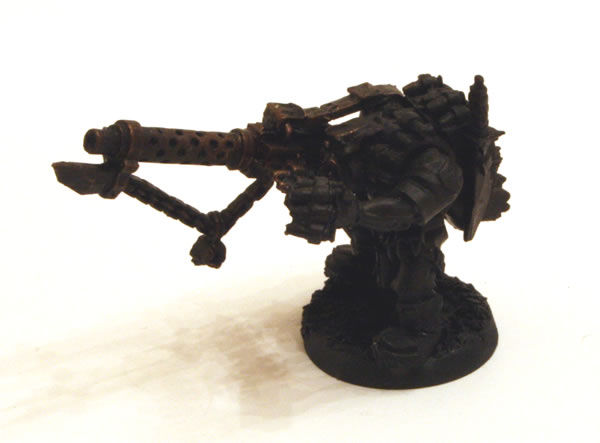 The next stage was to give the model a black undercoat. I then gave the model a drybrush of Tin Bitz.