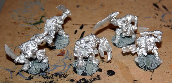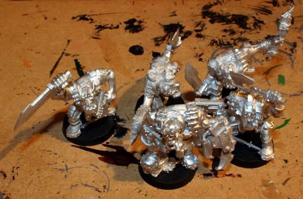 Having given the models a black undercoat, a couple were drybrushed with Tin Bitz.