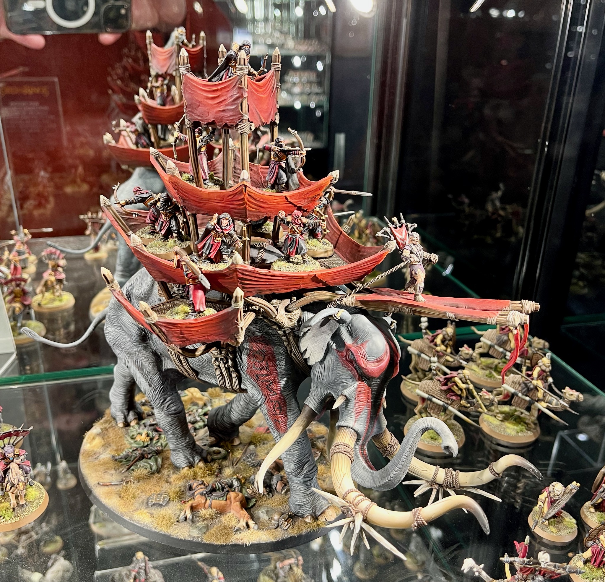 War Mûmak of Harad from the display cabinets at Warhammer World.