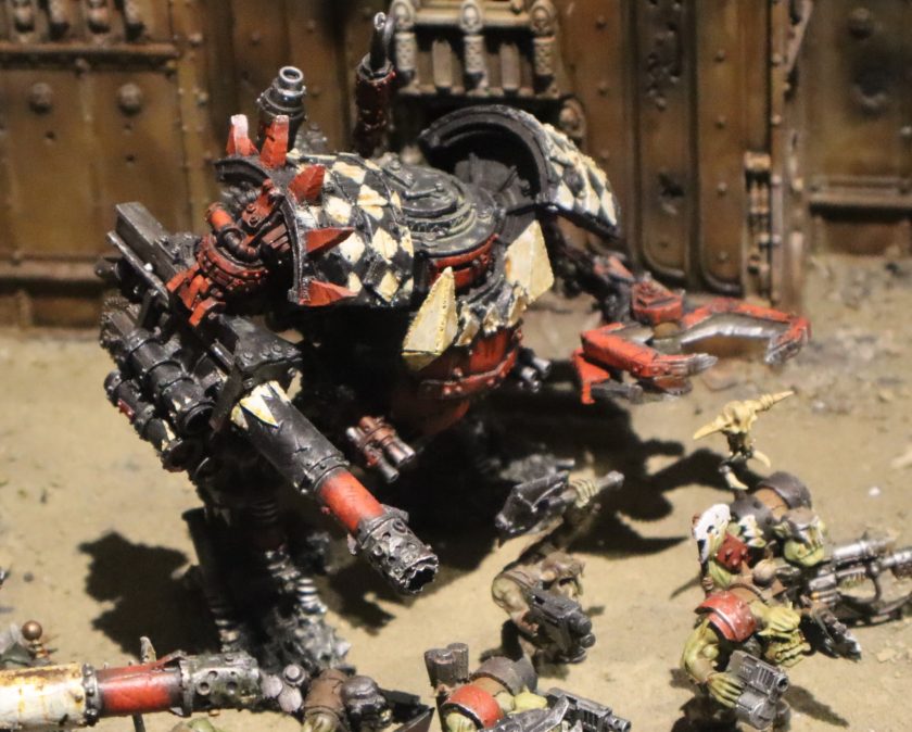 Ork Mega-Dread enters the fray. A smoke-belching, hydraulic monster able to tear apart enemy tanks and smash a side lesser war machines with contemptuous ease.