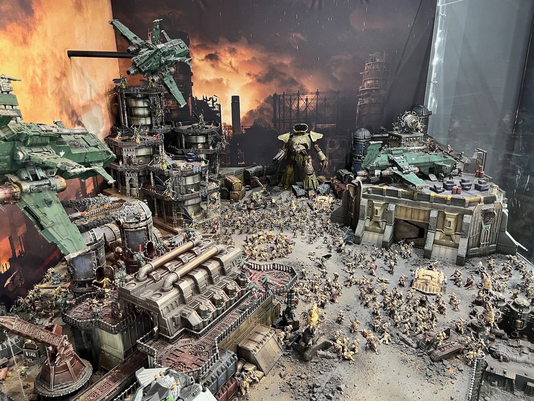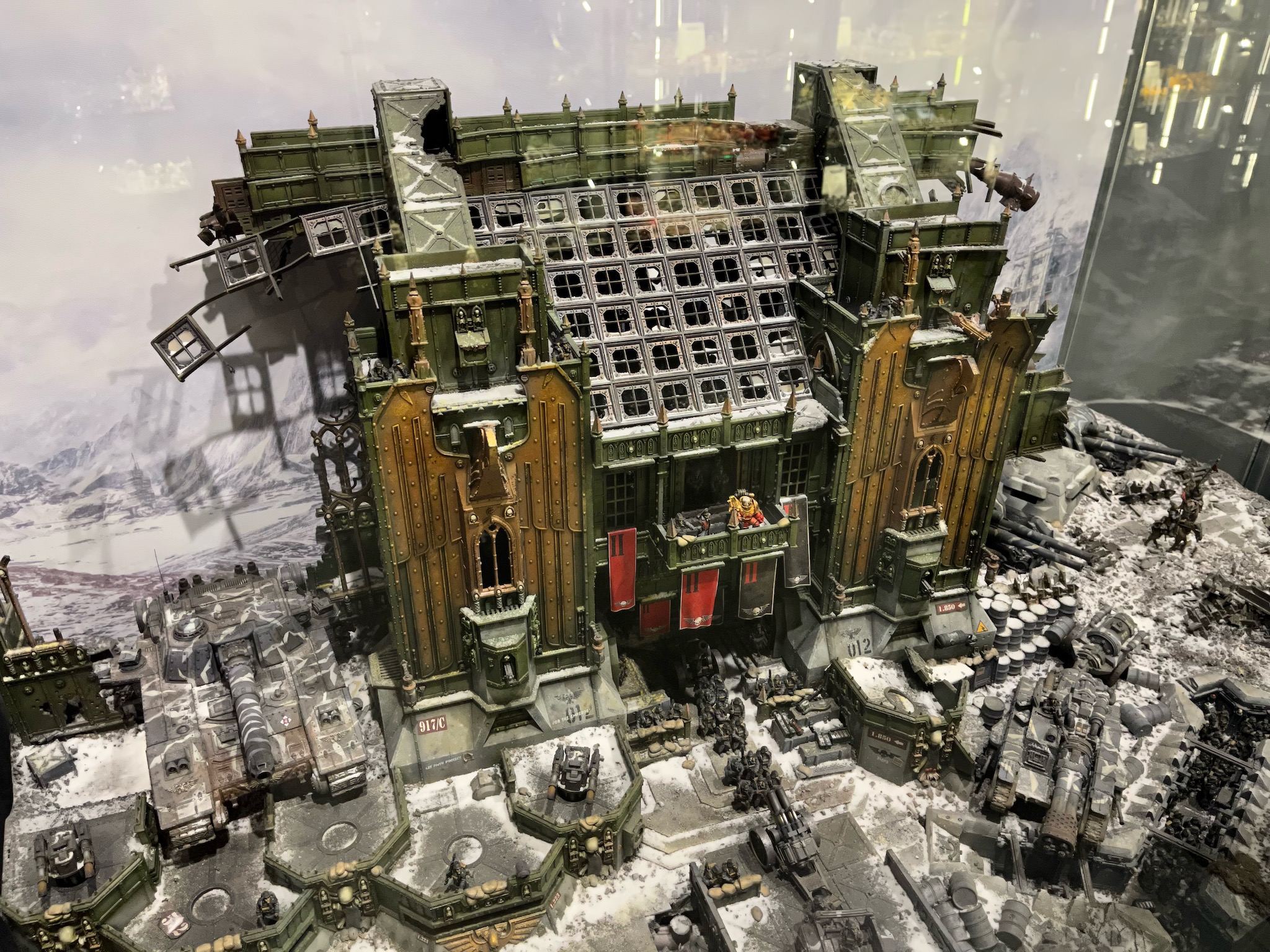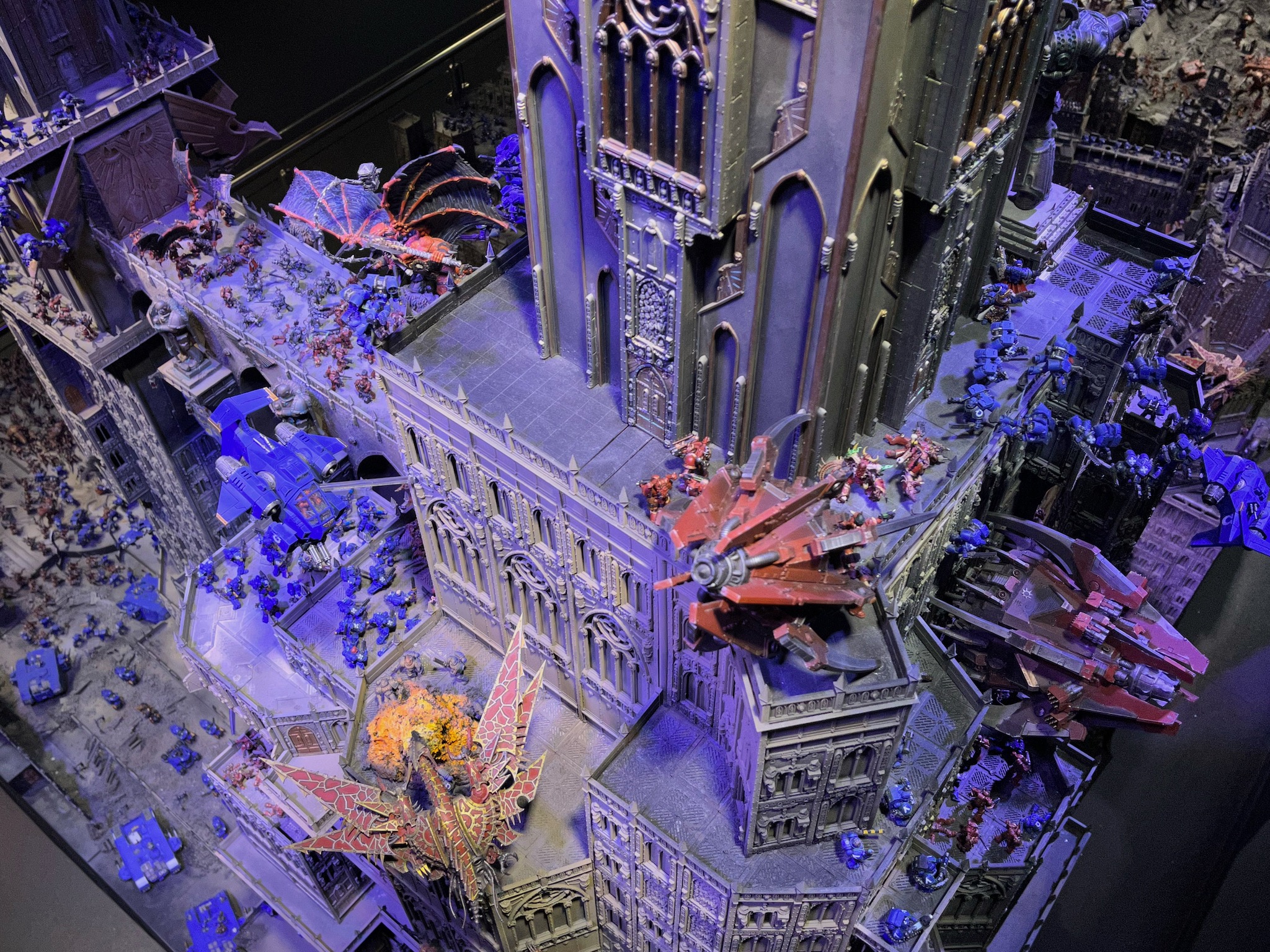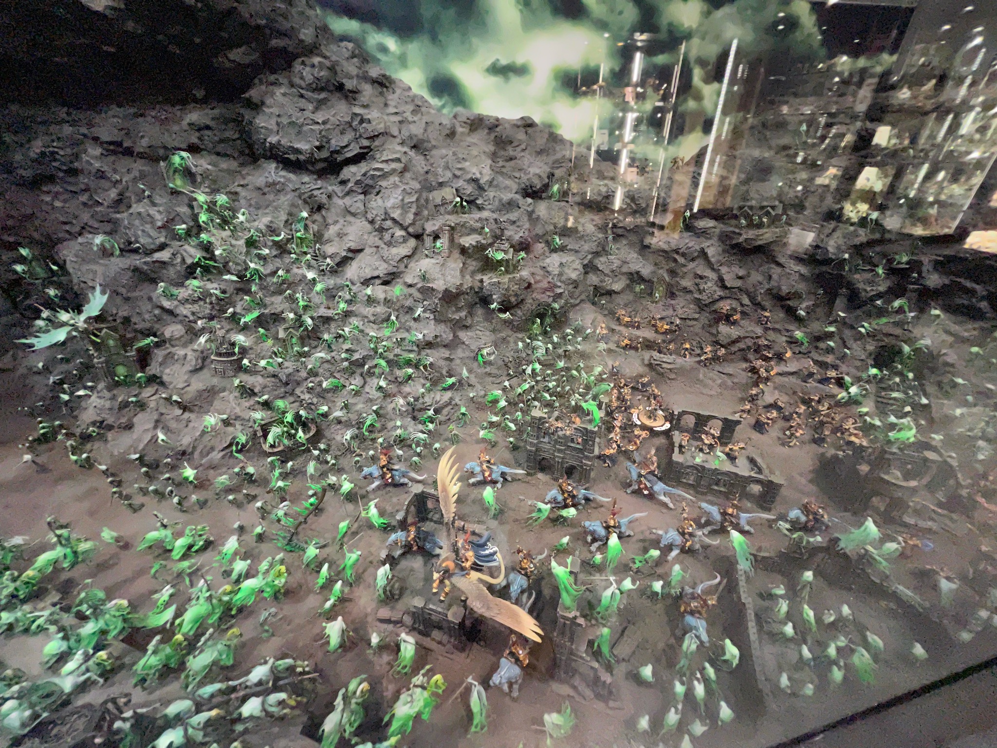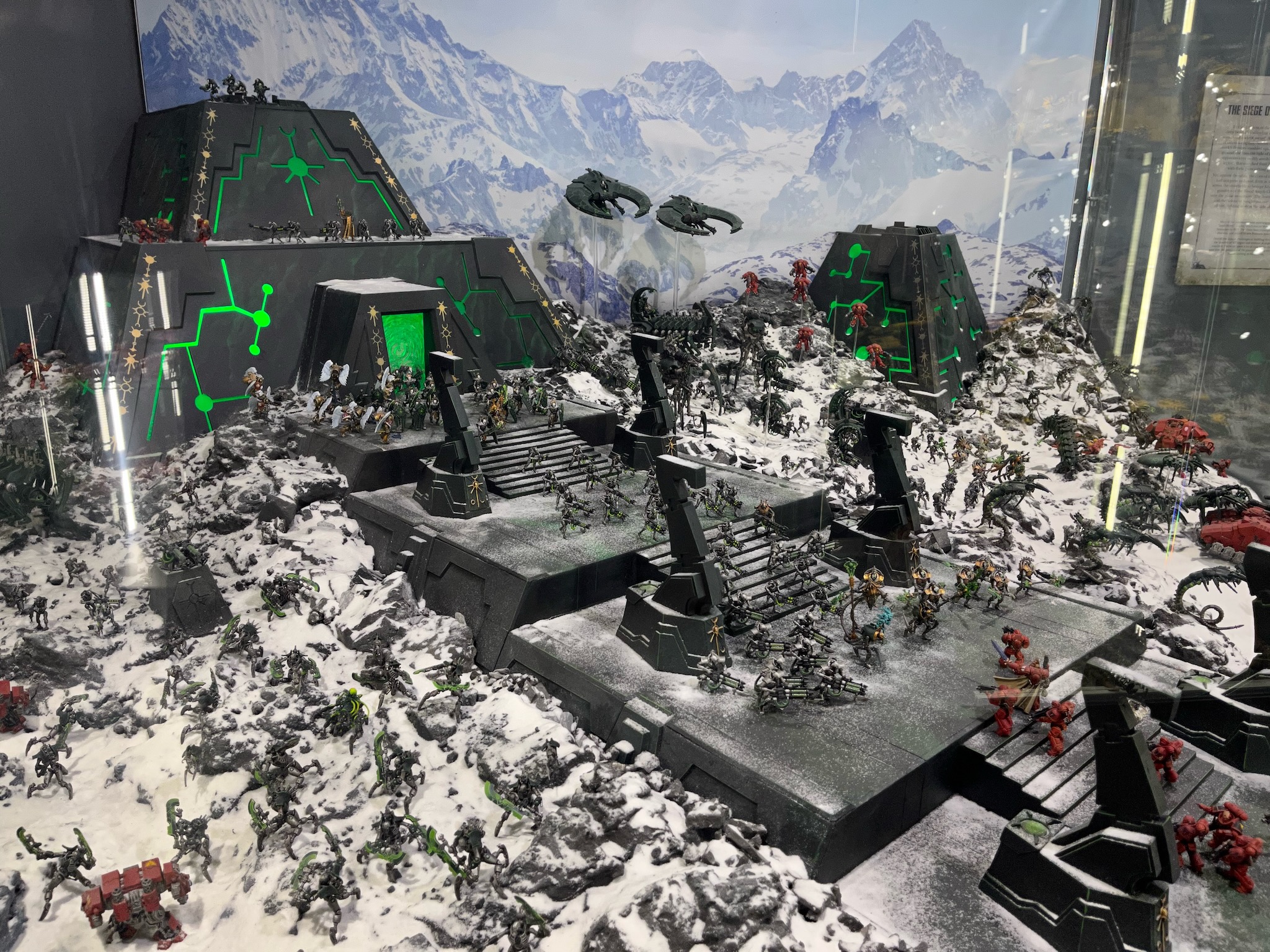 In the entrance hall of Warhammer World is a large diorama of Ultramarines defending an Imperial facility against an overwhelming Necron force, entitled the Mines of Vertigus II.