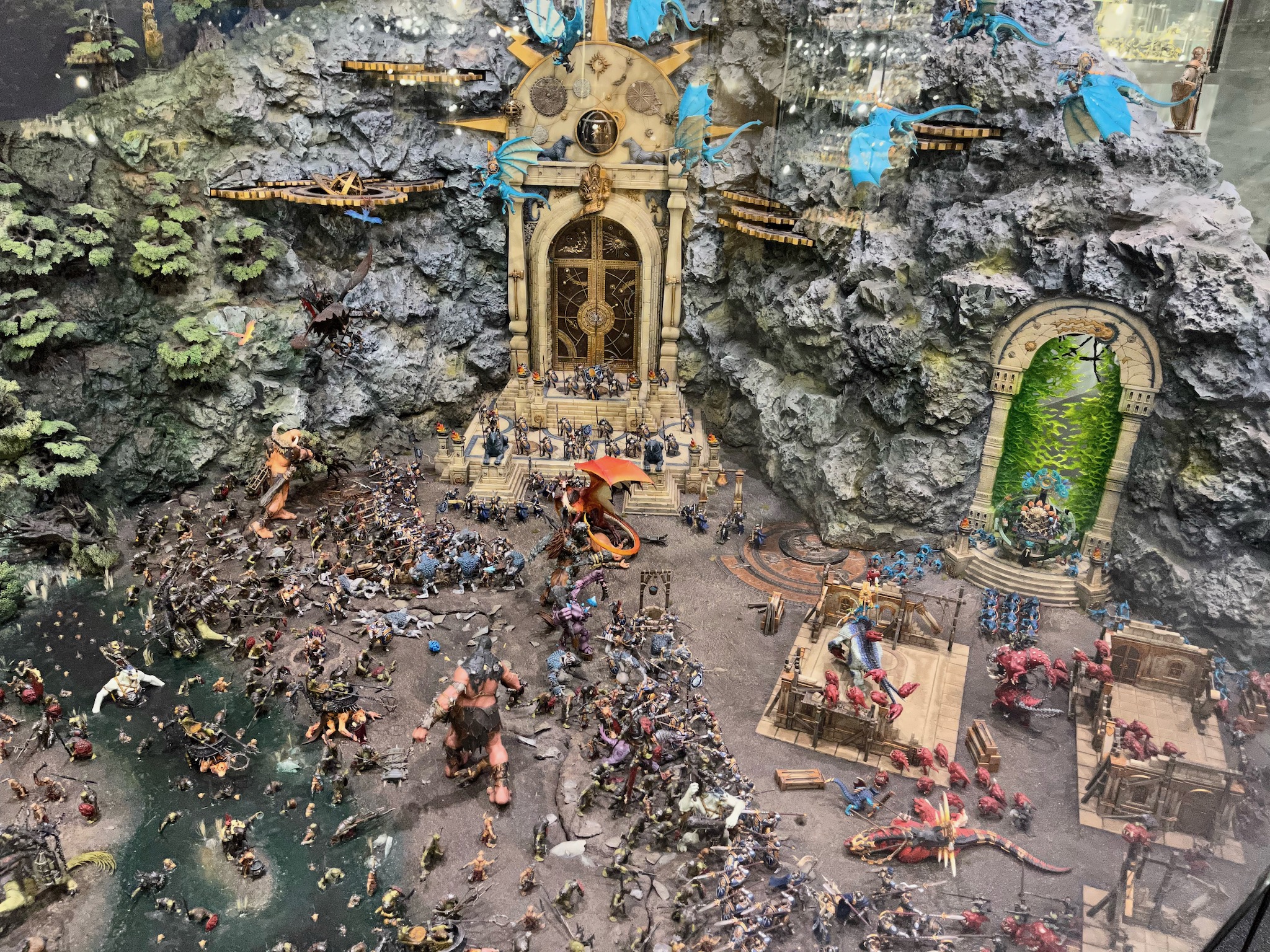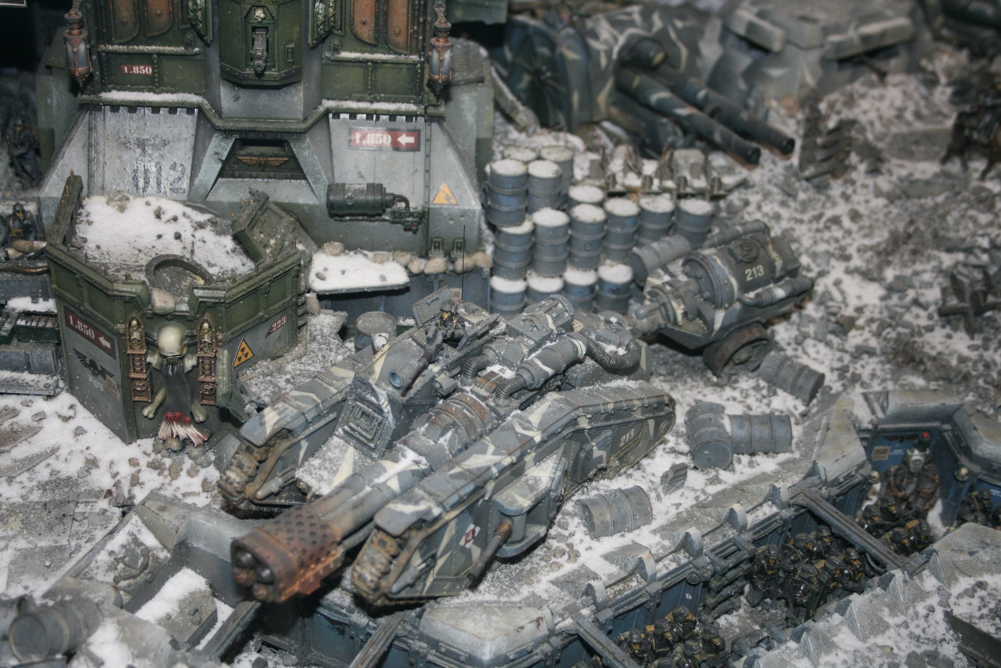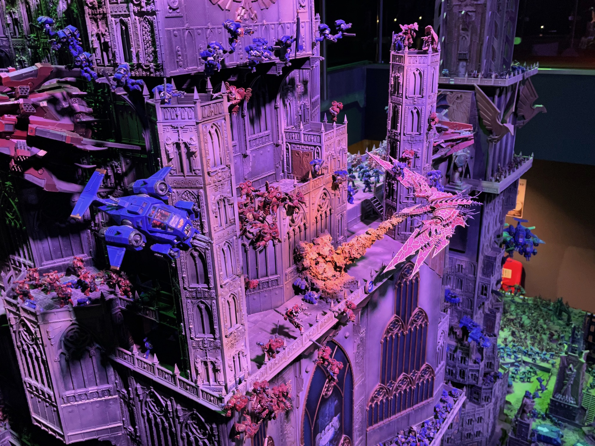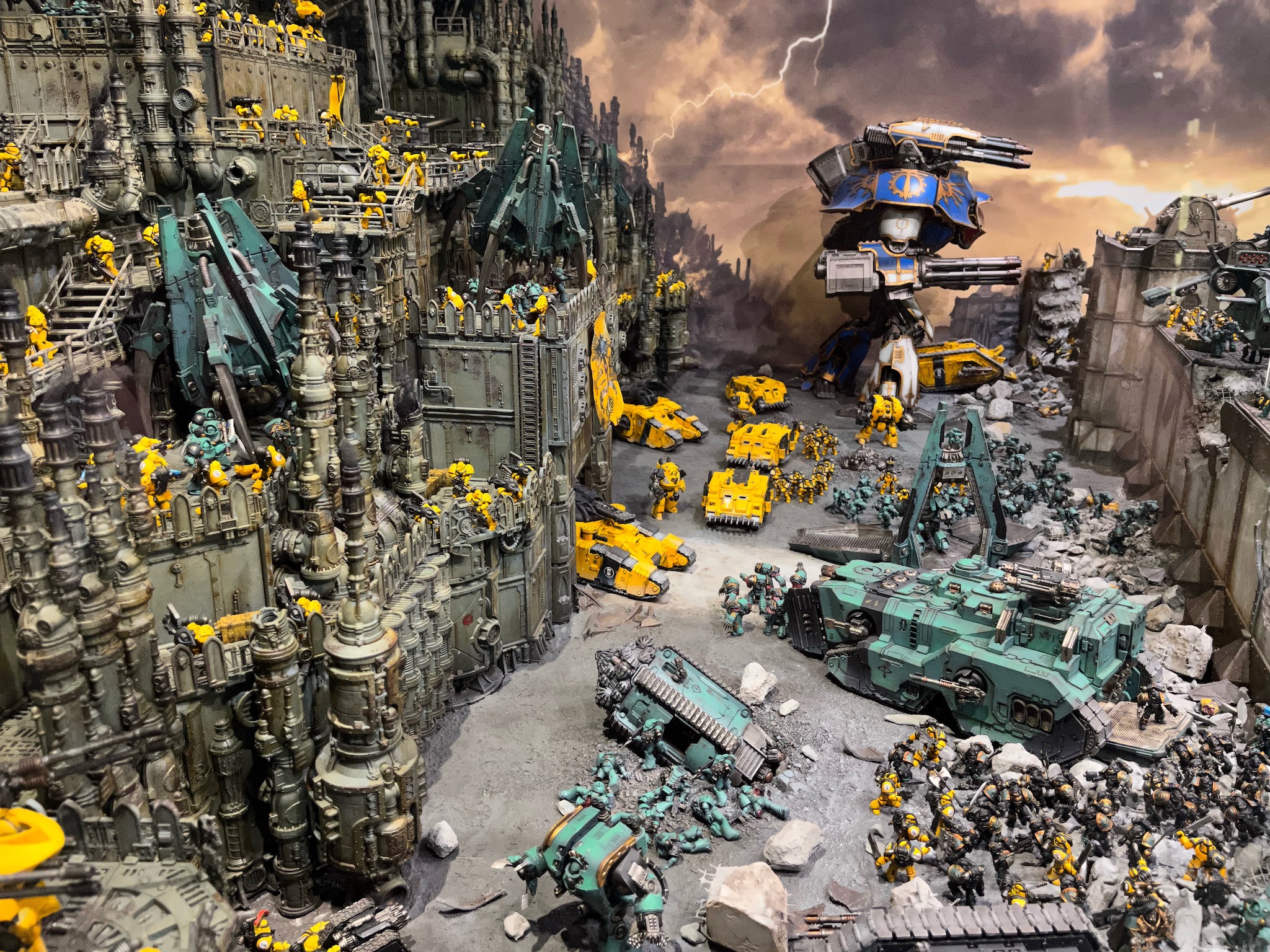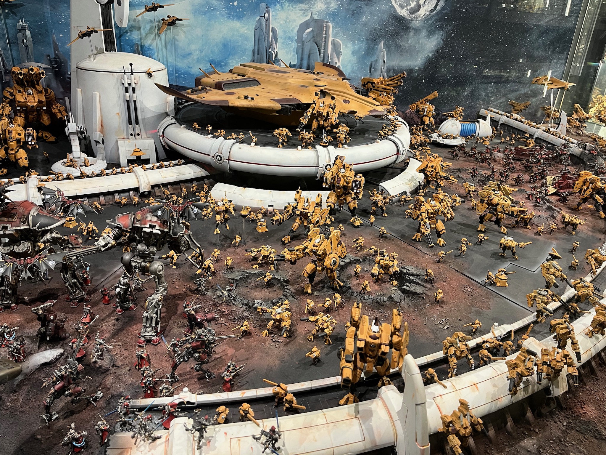 In the entrance hall of Warhammer World is a large diorama of Ultramarines defending an Imperial facility against an overwhelming Necron force, entitled the Mines of Vertigus II.