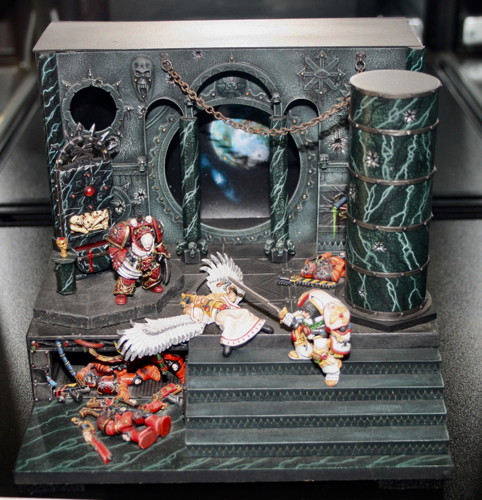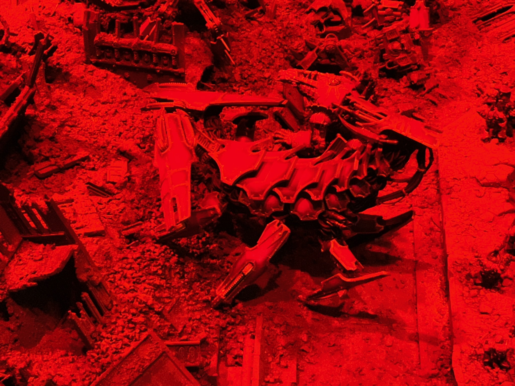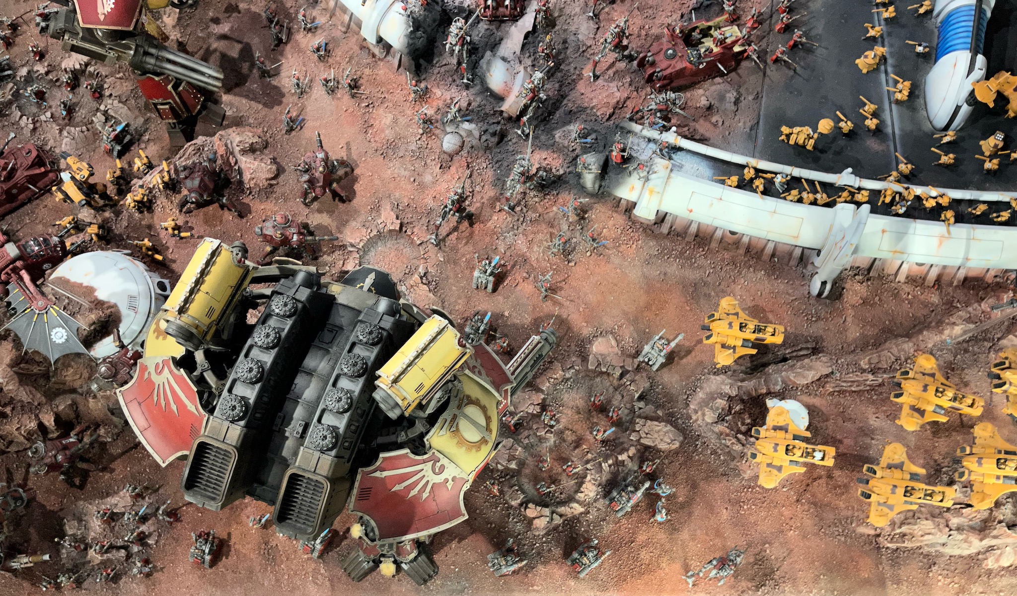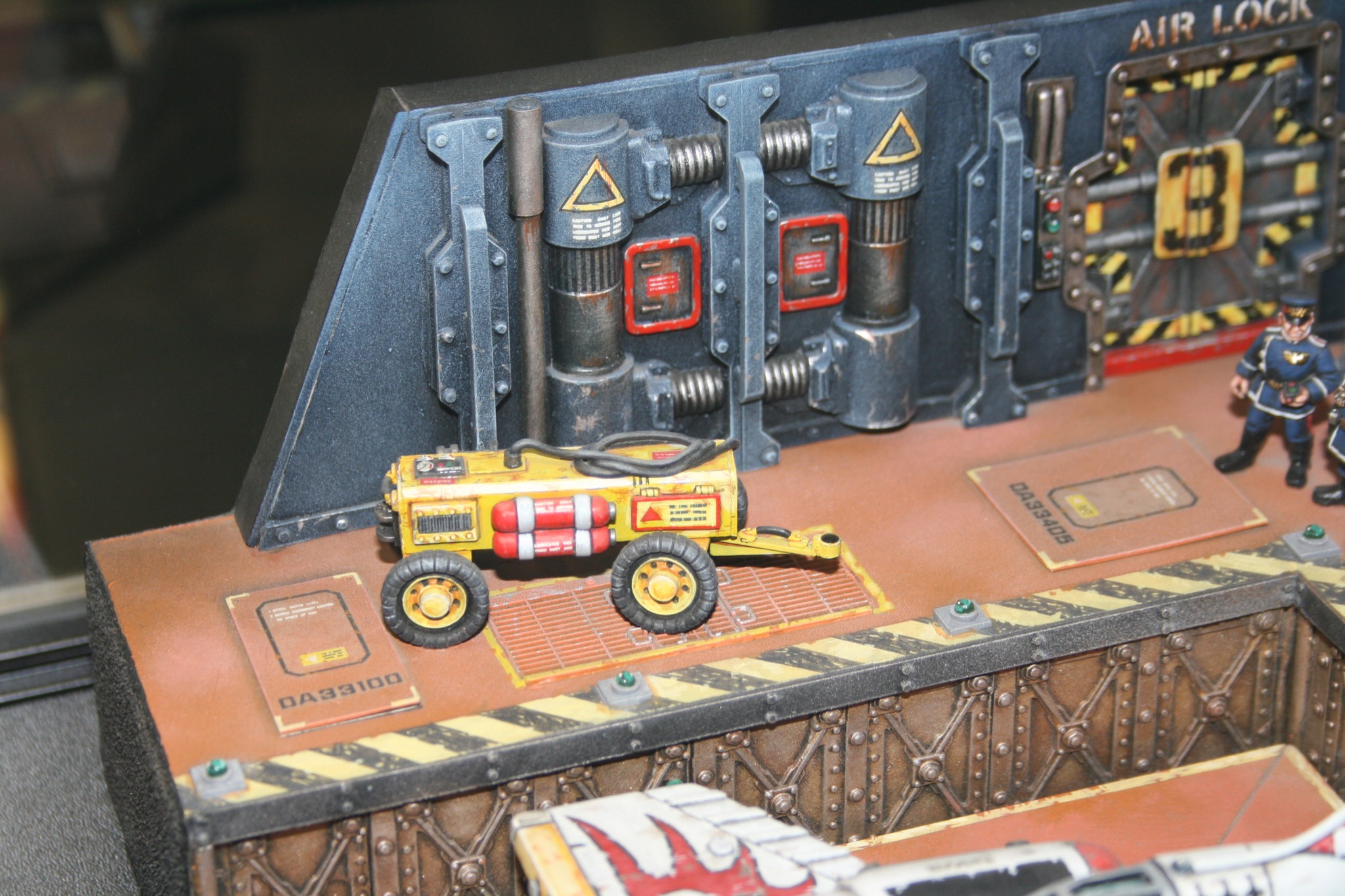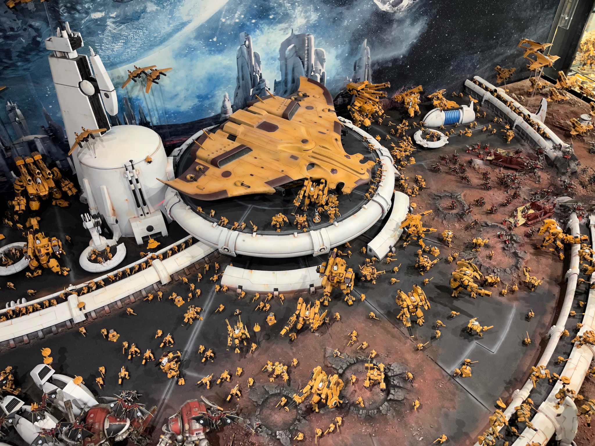 In the entrance hall of Warhammer World is a large diorama of Ultramarines defending an Imperial facility against an overwhelming Necron force, entitled the Mines of Vertigus II.