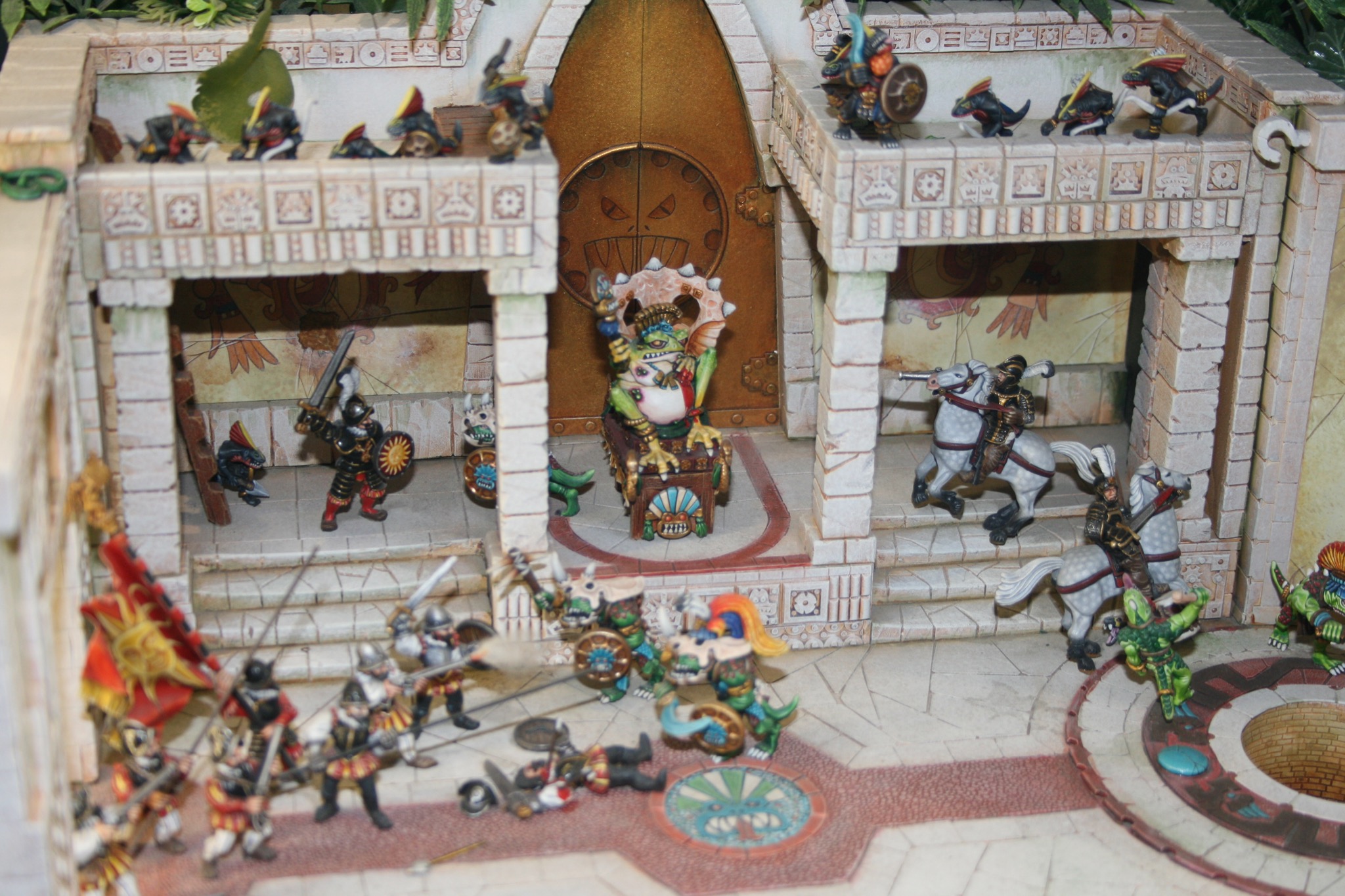 Overtyrant Greasus Goldtooth, or to give him his formal title, Tradelord Greasus Tribestealer Drakecrush Gatecrasher Hoardmaster Goldtooth the Shockingly Obese, is the fattest and most powerful Ogre Tyrant within the entire Ogre Kingdoms and holds the current title of Overtyrant, the Tyrant of all Ogre Tyrants