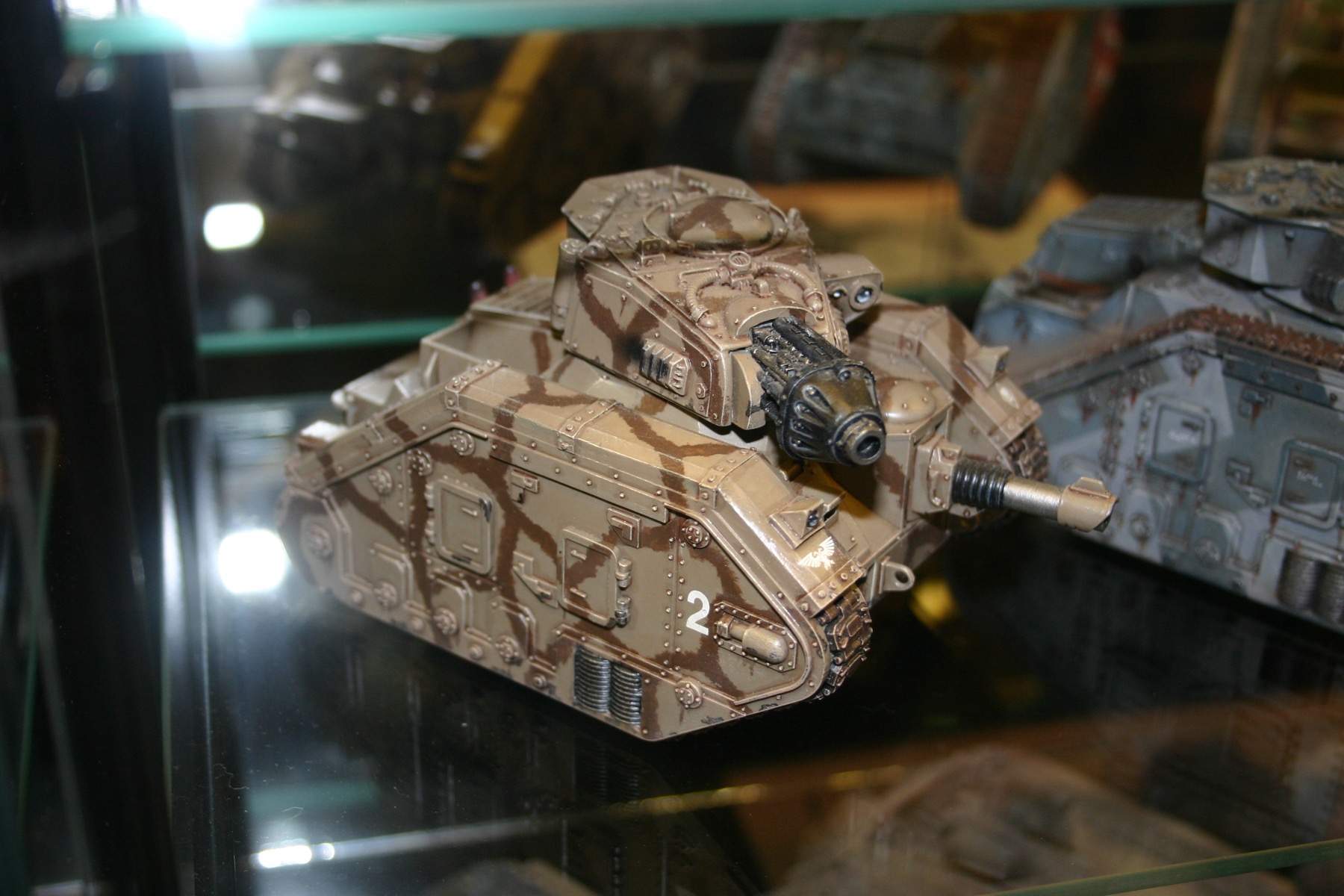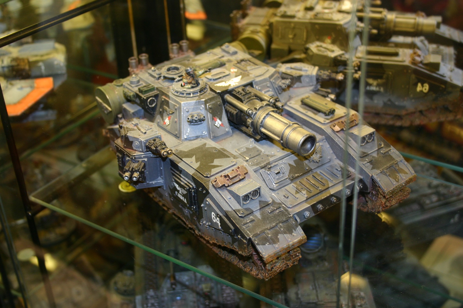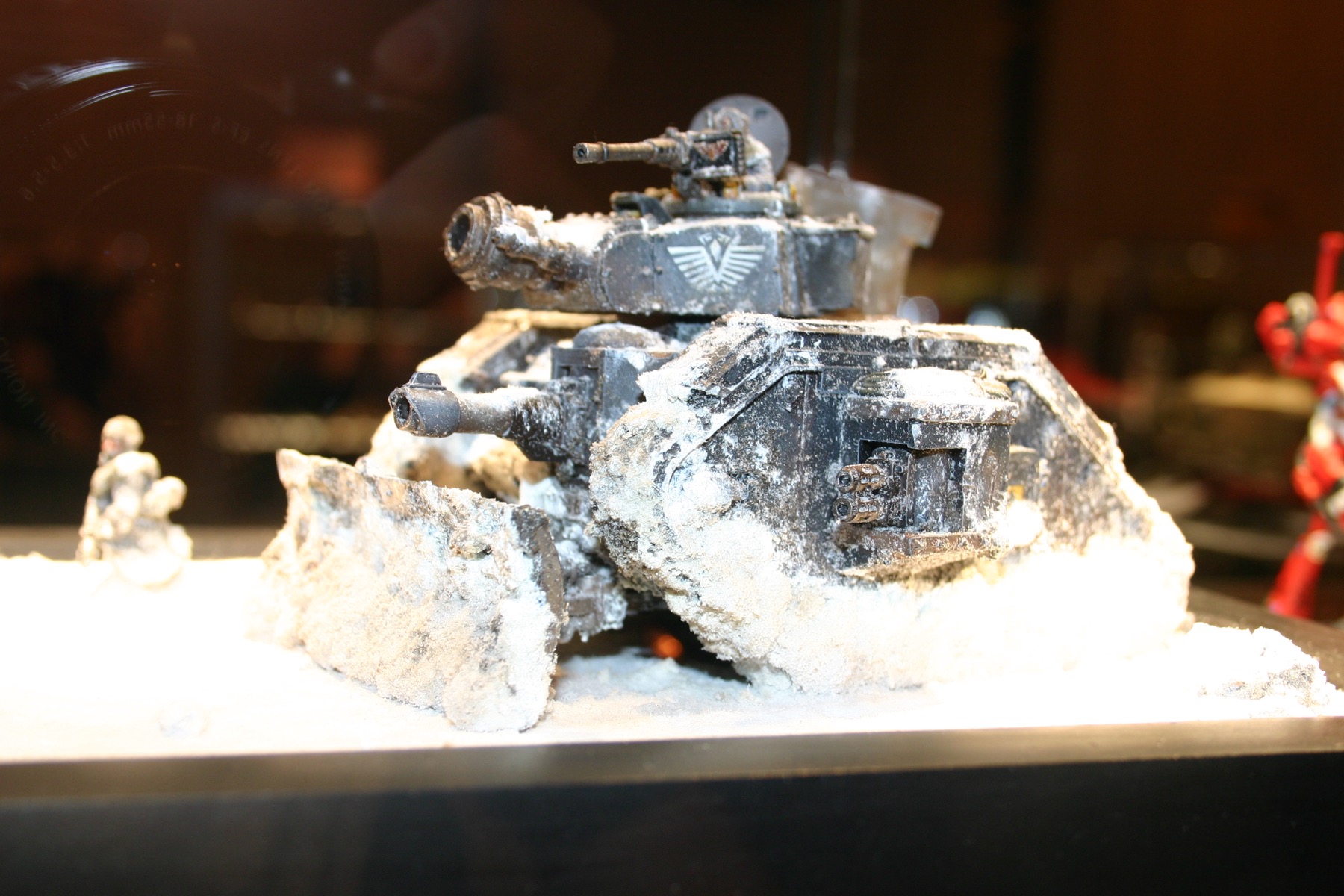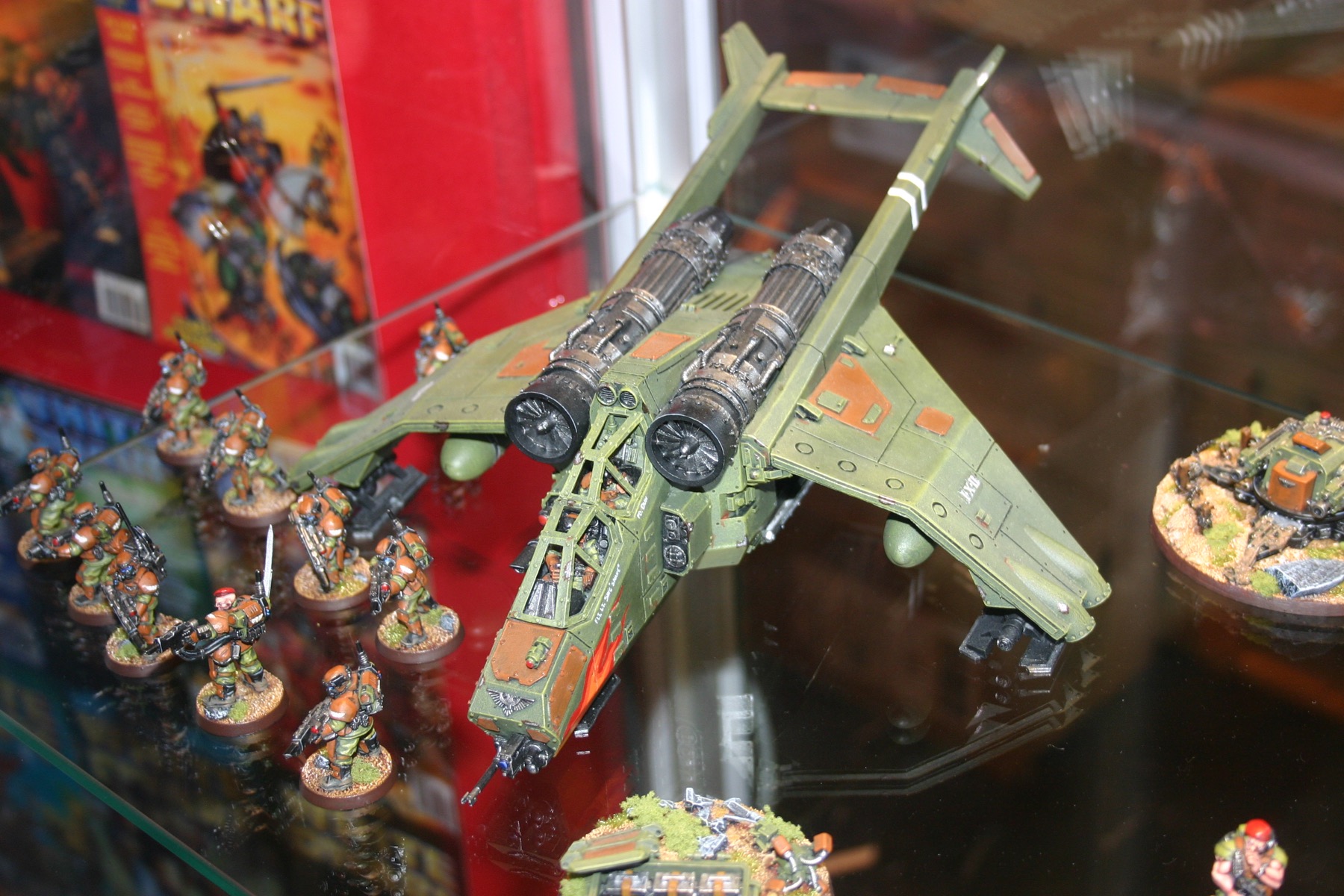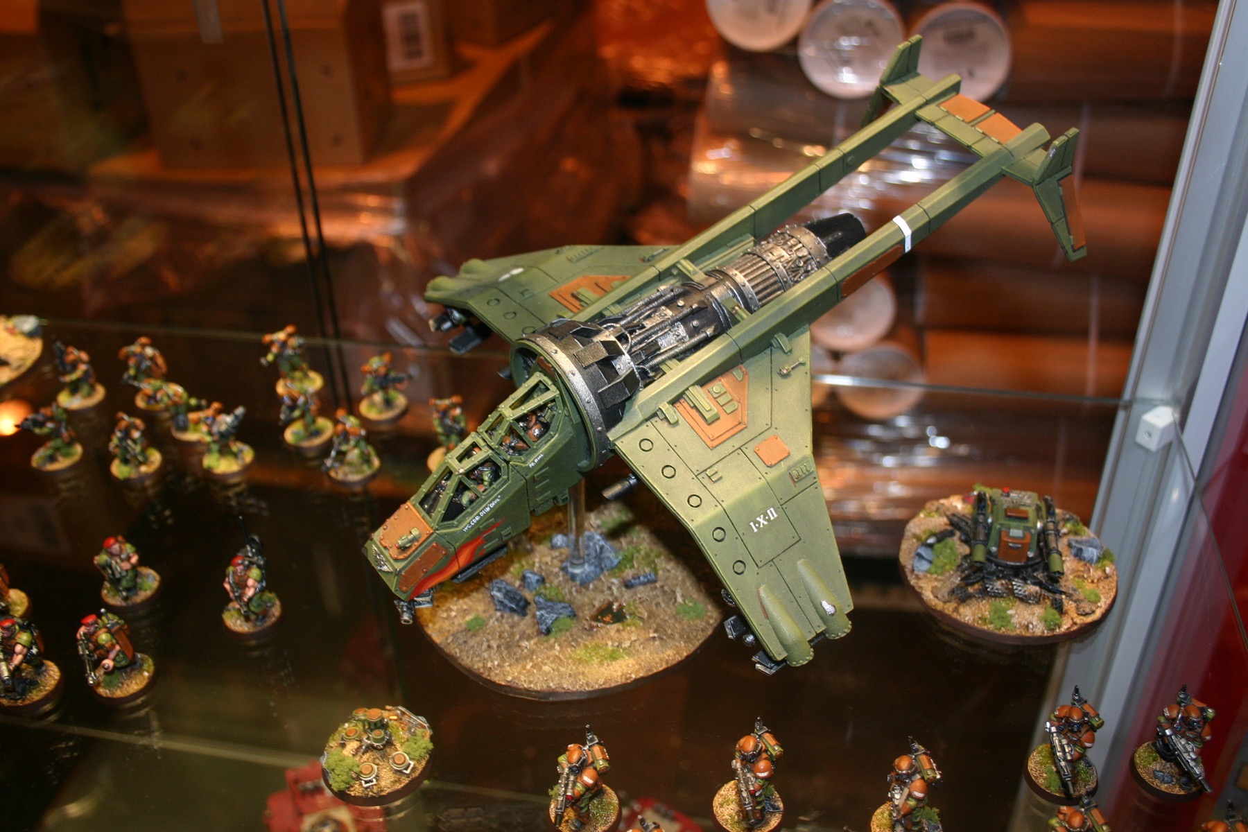 Valkyrie which is part of Owen Rees’ Imperial Guard – The 374th Tahnelian Airborne, in the White Dwarf display cabinets at GamesDay 2006.