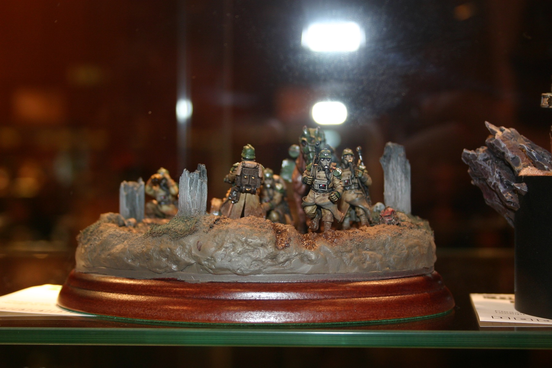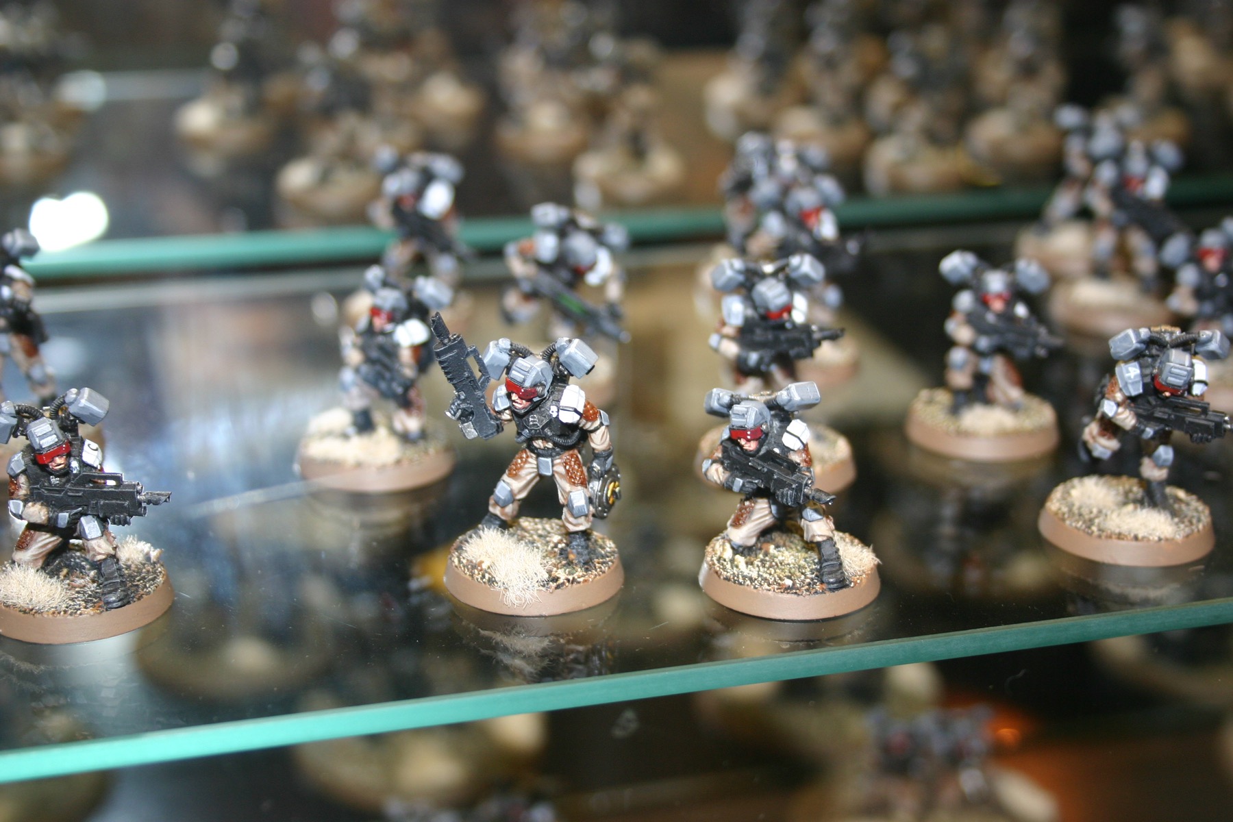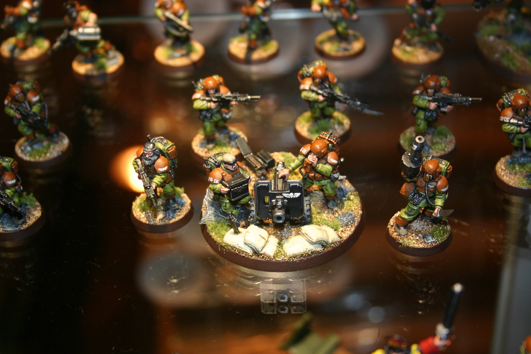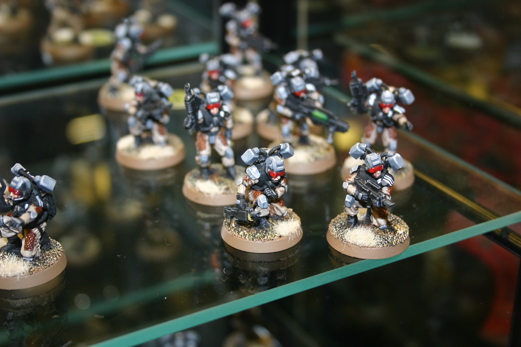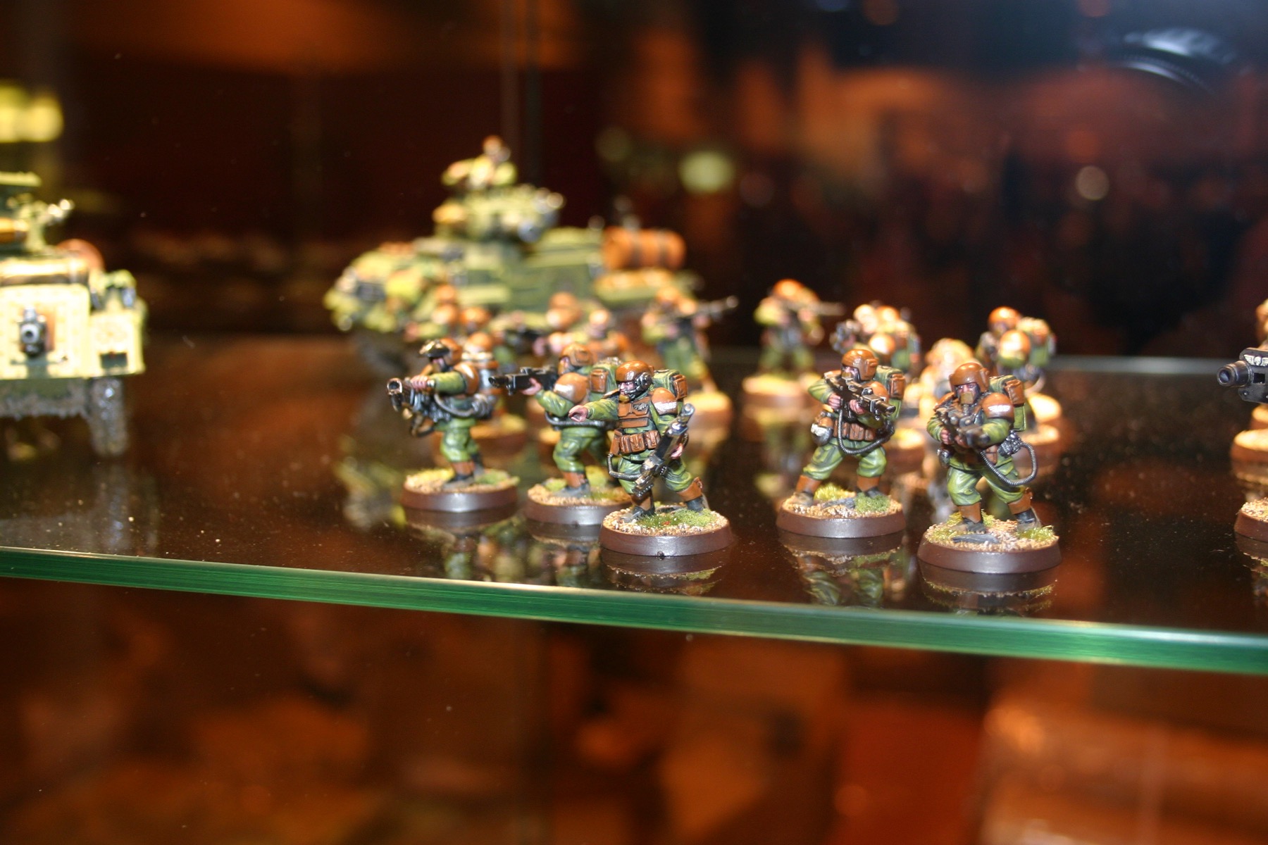 Imperial Guard Squad which is part of Owen Rees’ Imperial Guard – The 374th Tahnelian Airborne, in the White Dwarf display cabinets at GamesDay 2006.
