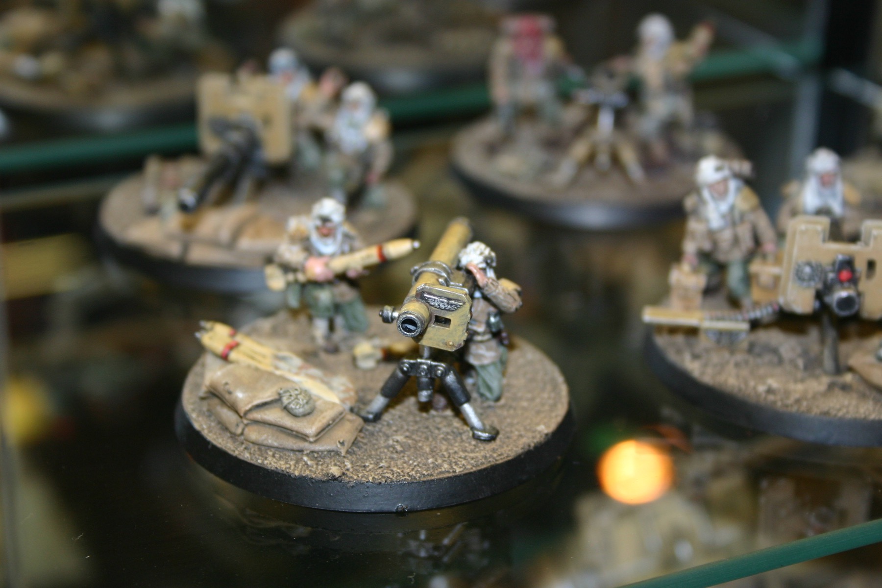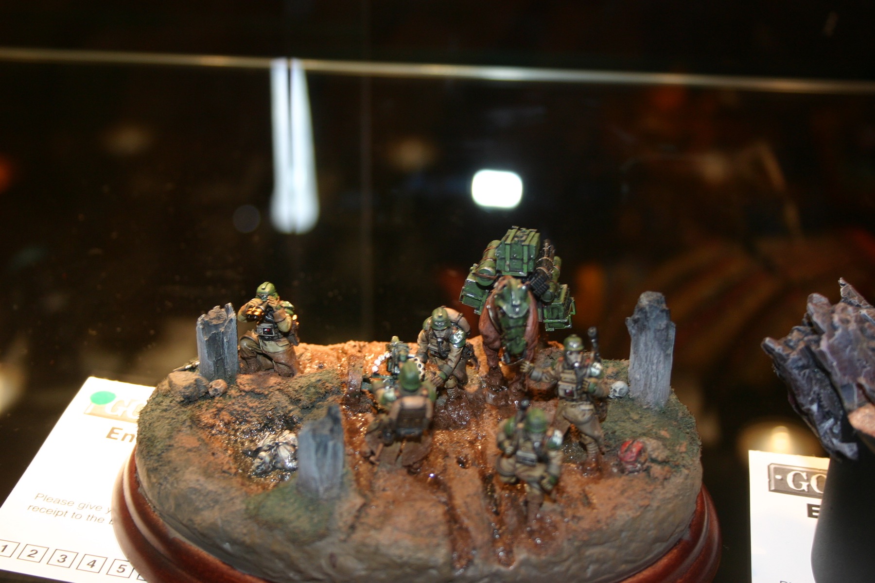 Heavy Bolter team which is part of Owen Rees’ Imperial Guard – The 374th Tahnelian Airborne, in the White Dwarf display cabinets at GamesDay 2006.