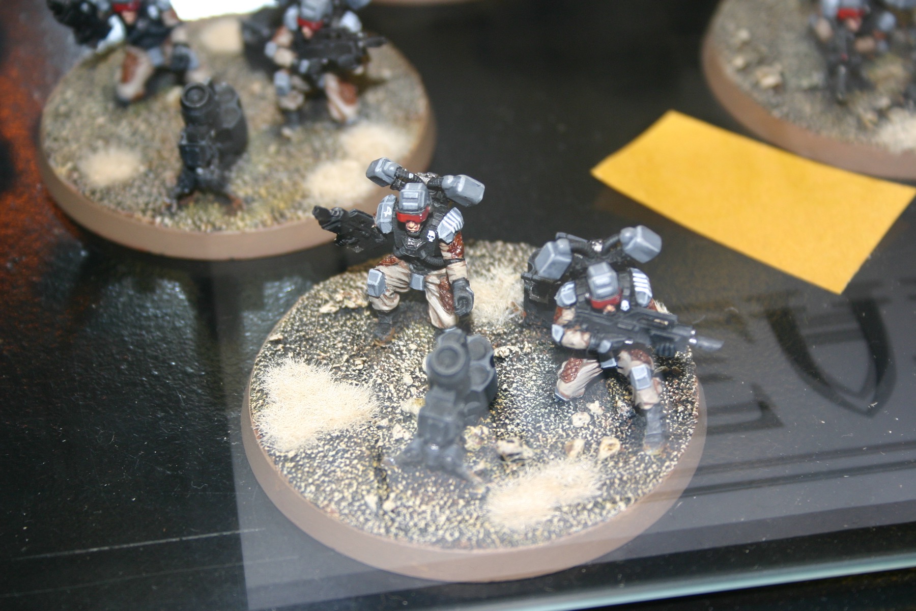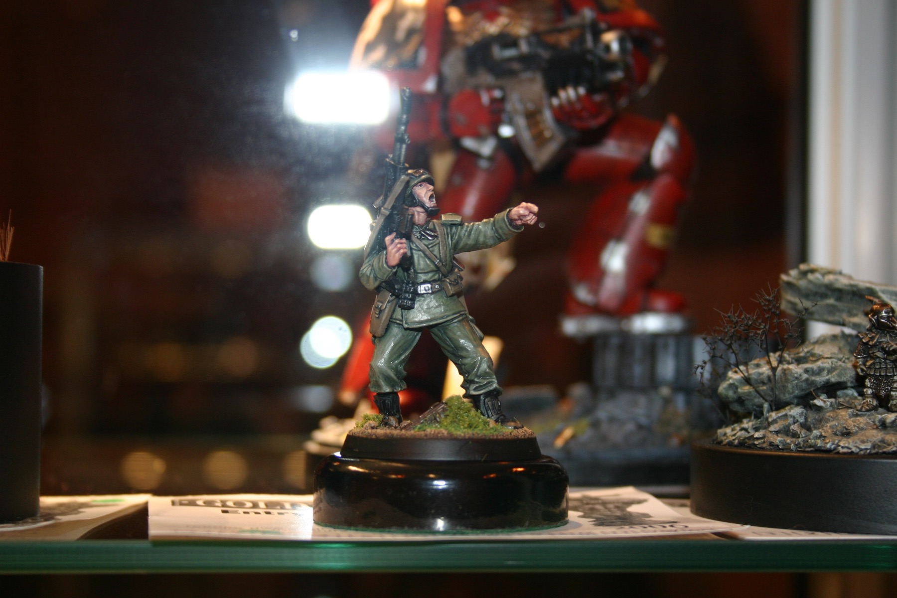 Command Squad which is part of Owen Rees’ Imperial Guard – The 374th Tahnelian Airborne, in the White Dwarf display cabinets at GamesDay 2006.