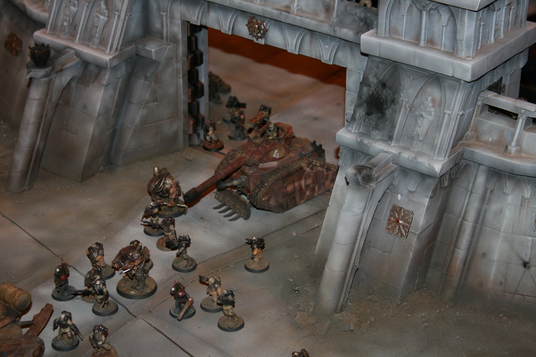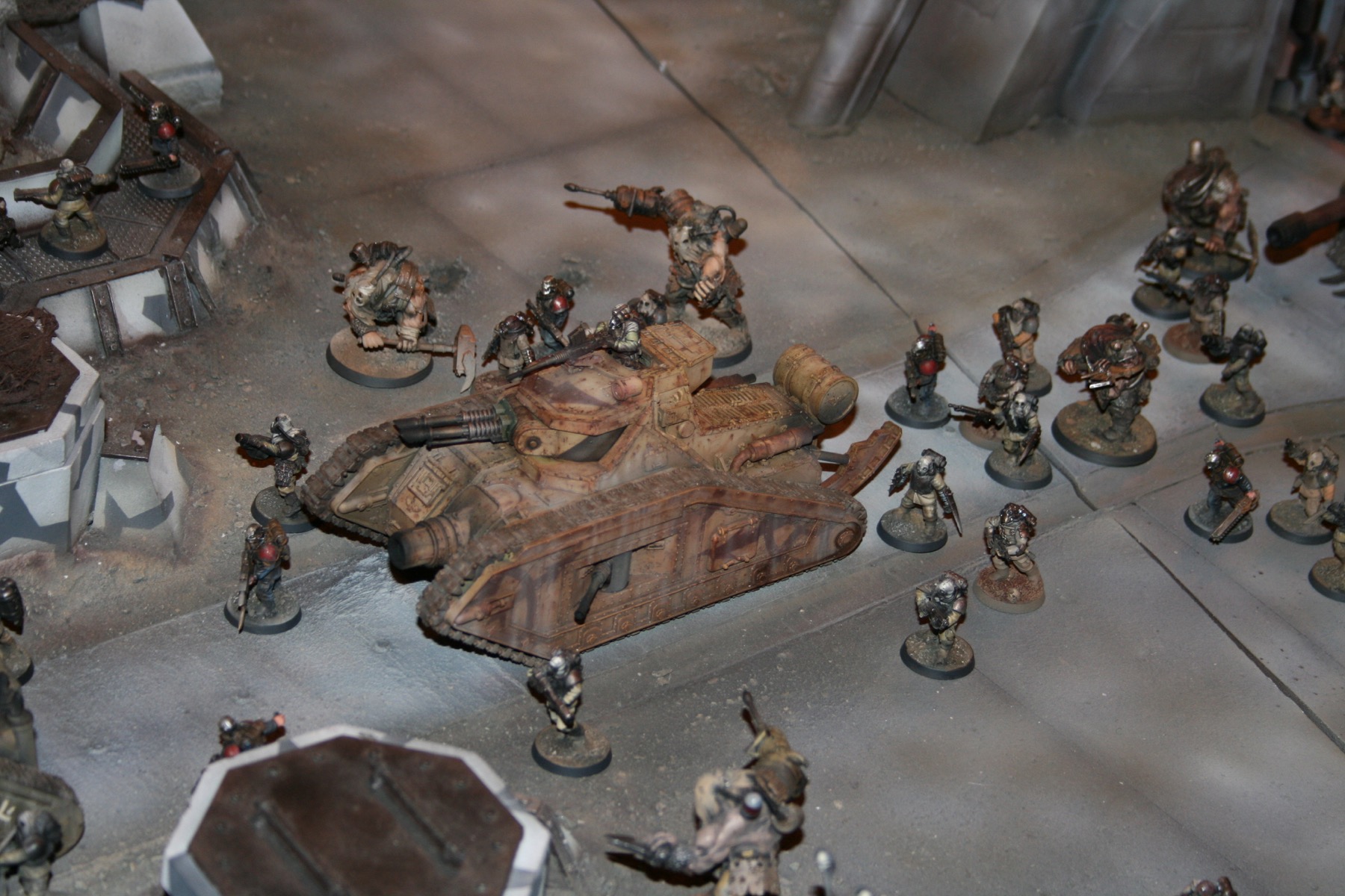 Chaos Renegades during the Siege of Vraks. The tank in the middle is a Leman Russ Vanquisher. From the Forgeworld Siege of Vraks diorama at GamesDay 2007.