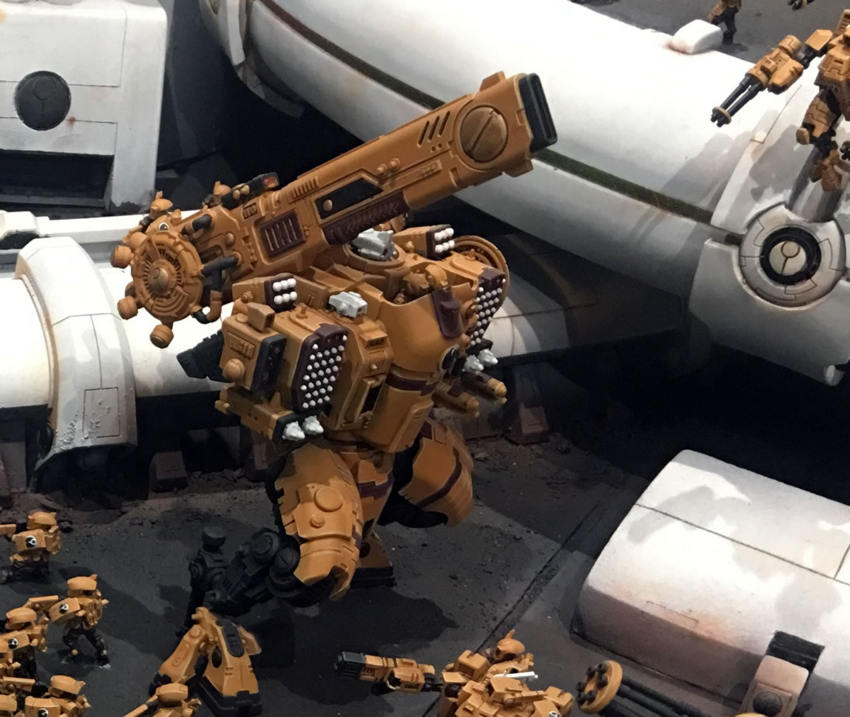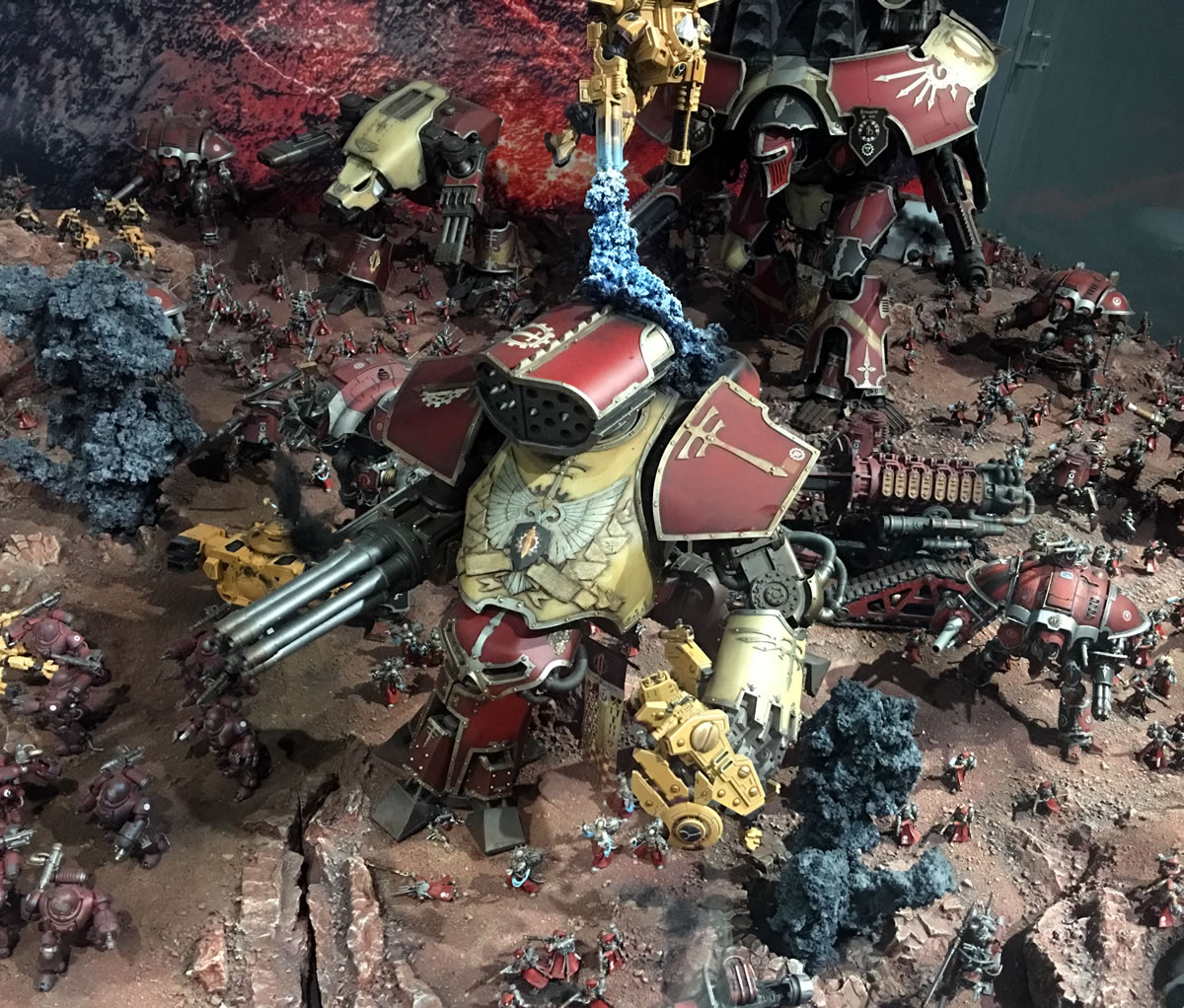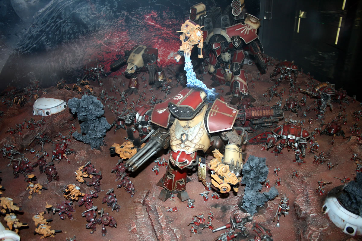 This Chaos Knight was marching across the battlefield at Warhammer World, opening fire on the enemy forces.