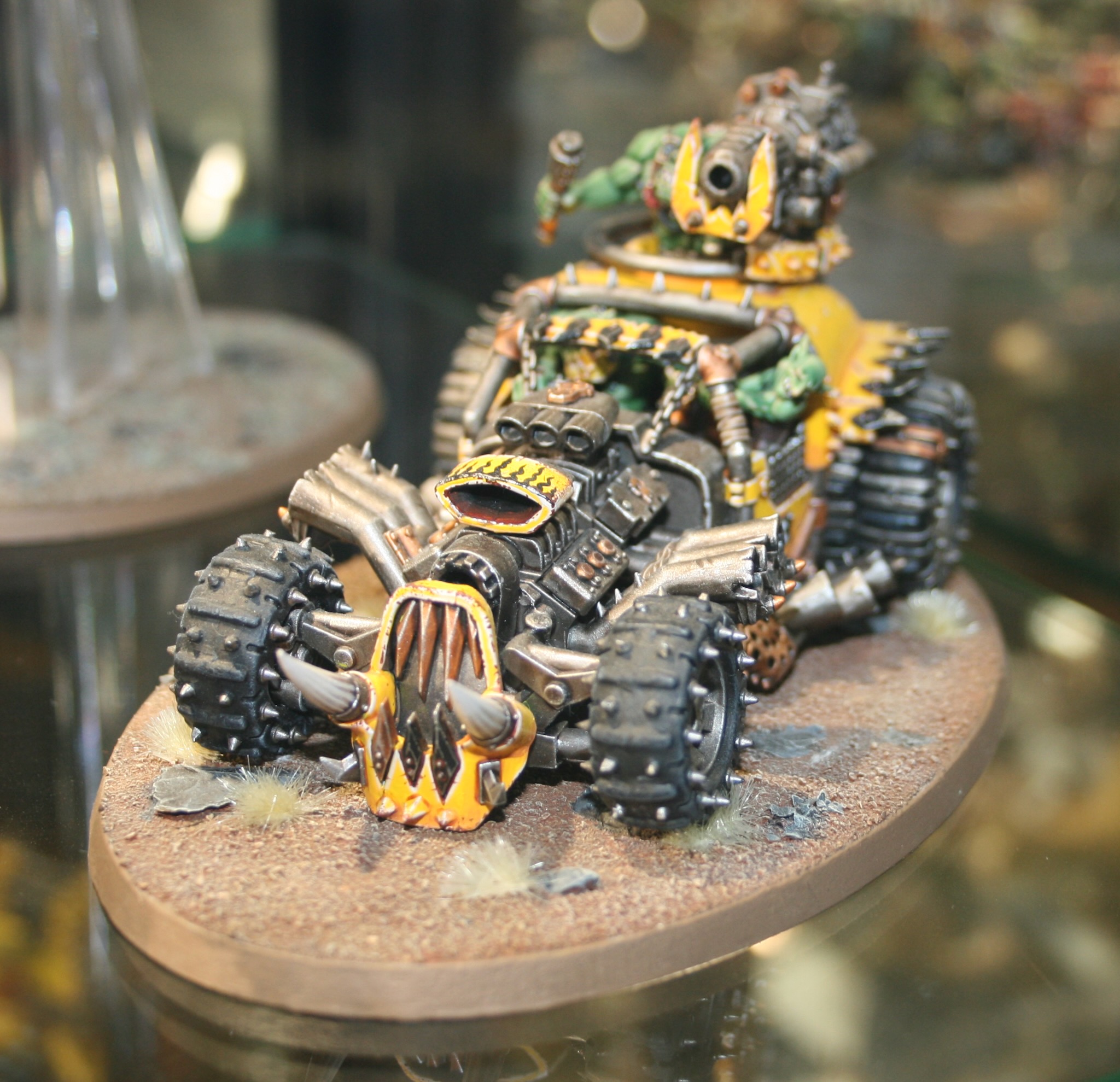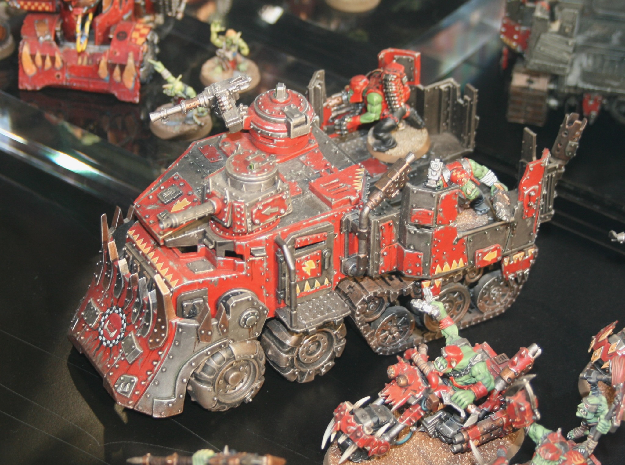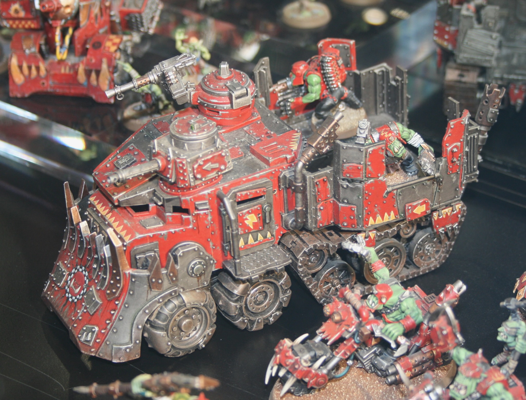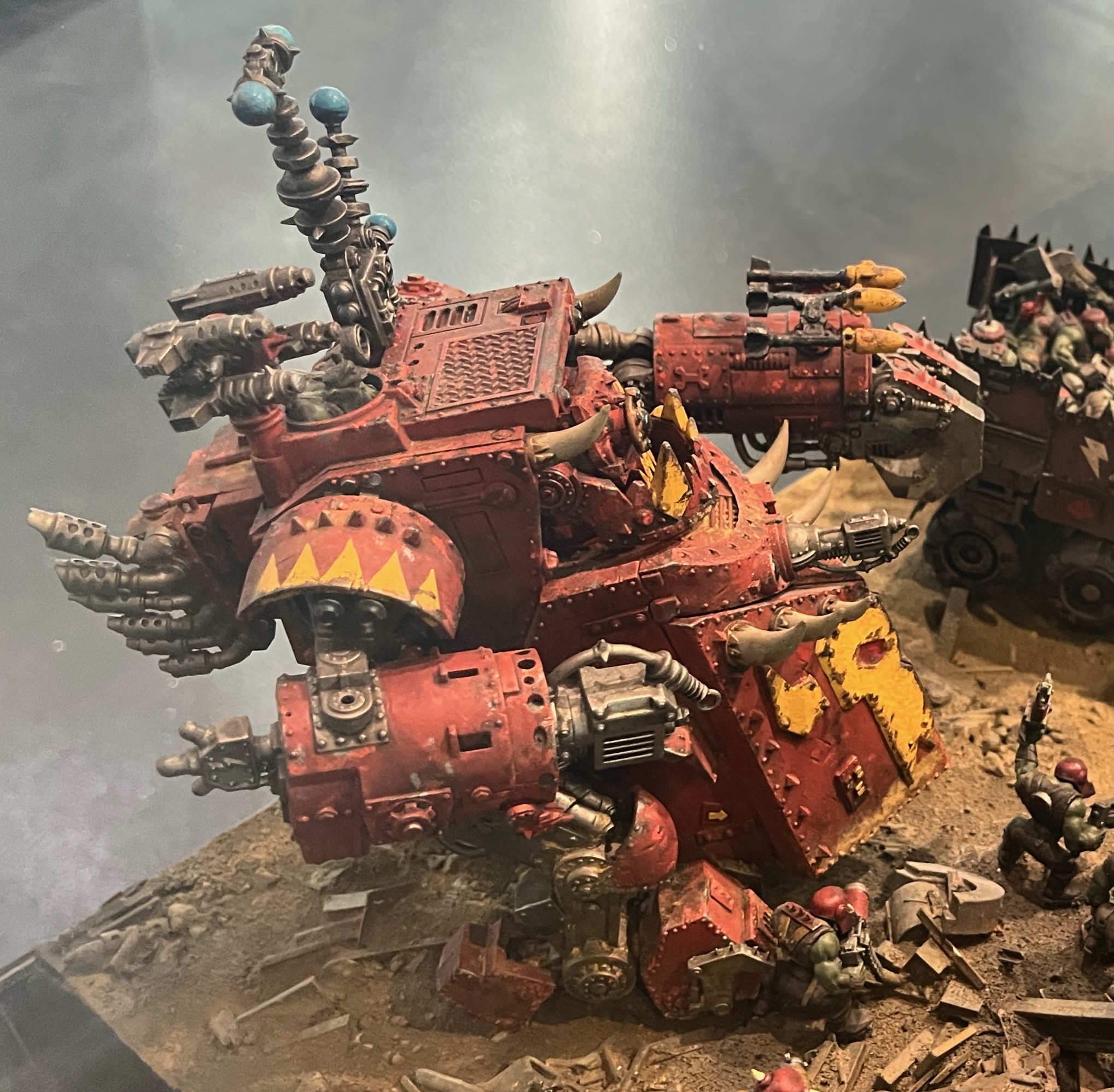 See photographs of completed Ork Battlewagons from various shows.